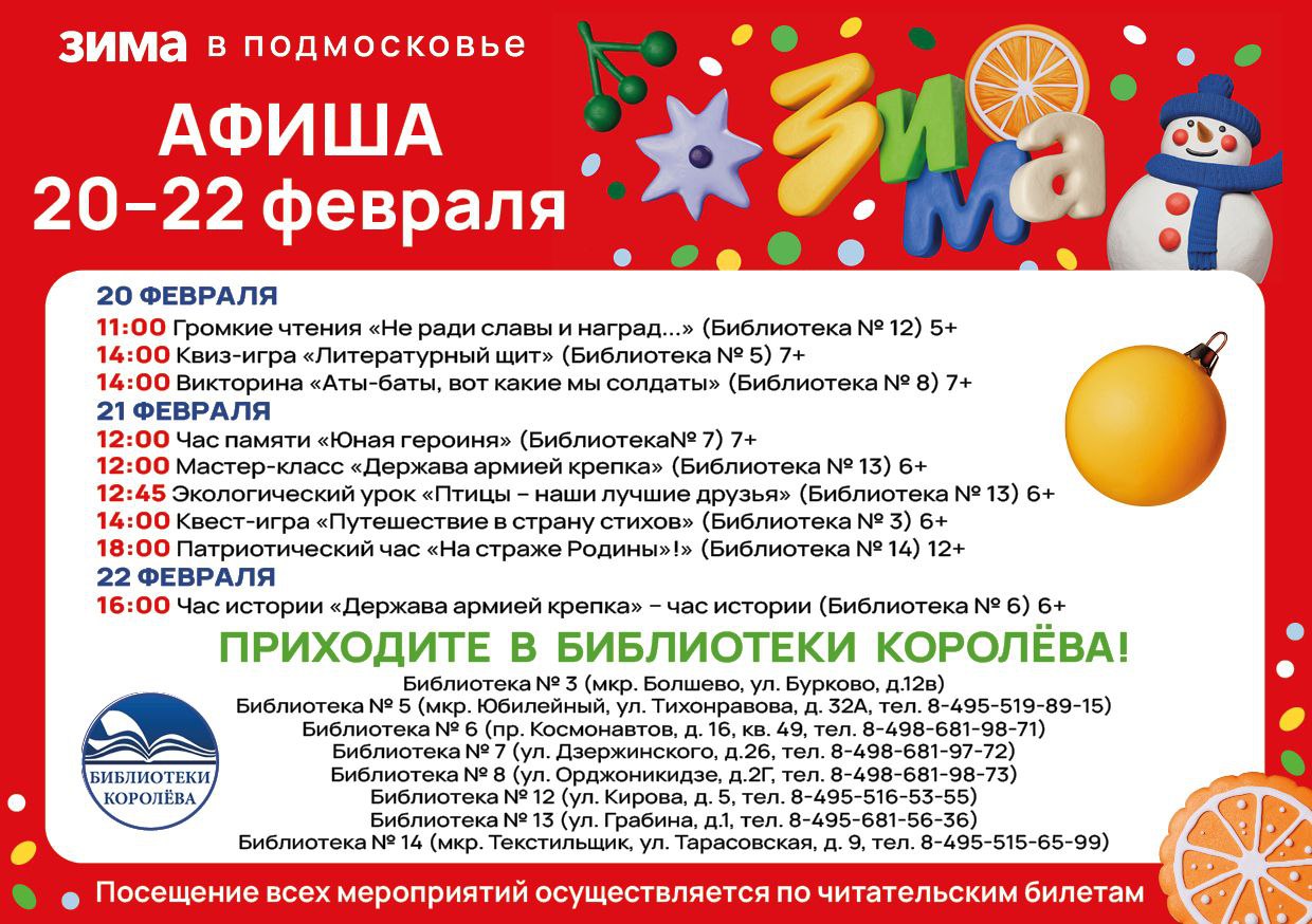 Афиша мероприятий 20 – 22 февраля