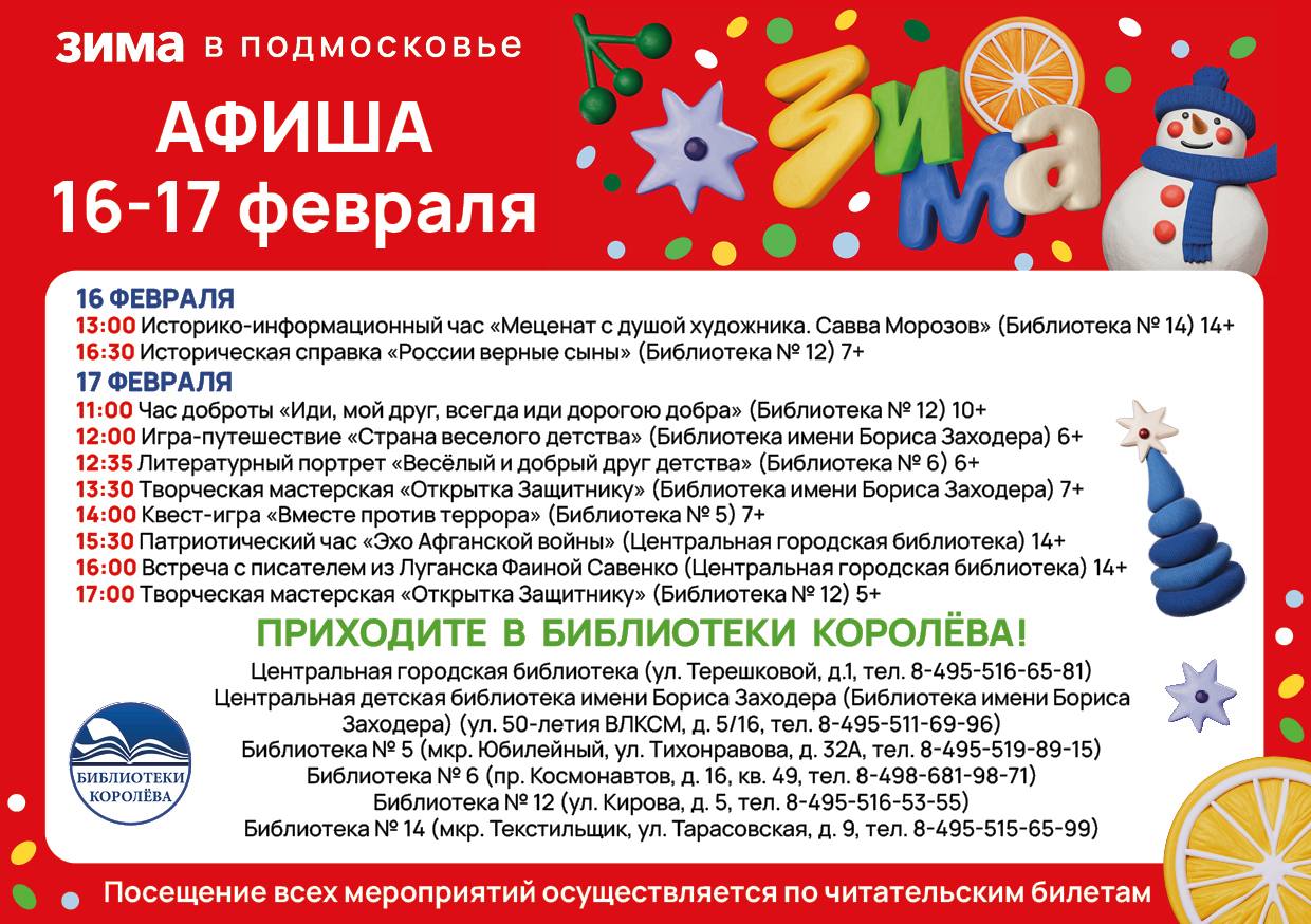 Афиша мероприятий 16 – 17 февраля