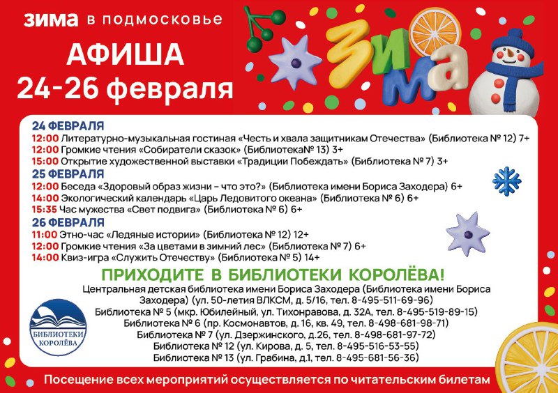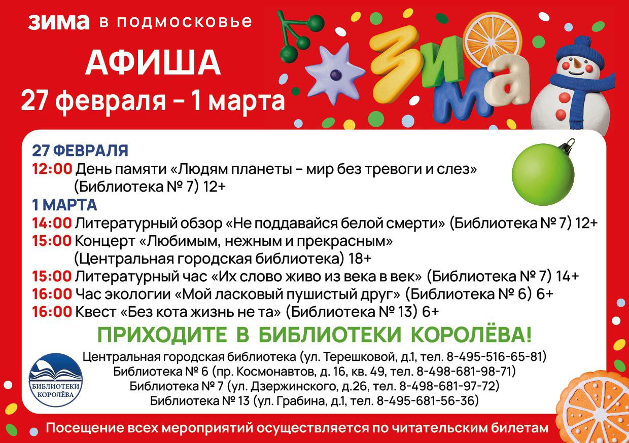 Афиша мероприятий в библиотеках Королёва к Масленичной неделе
