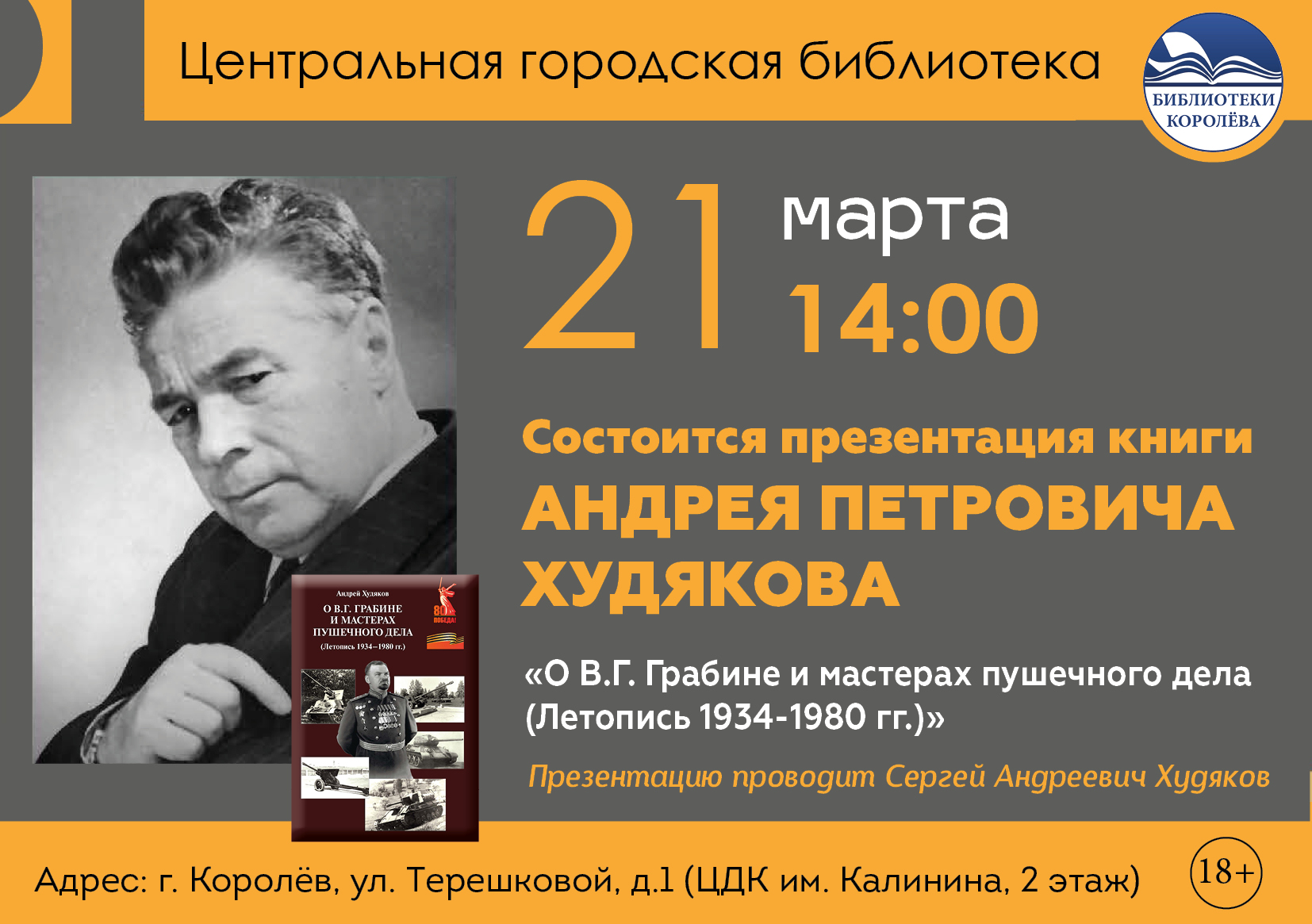 "О В. Г. Грабине и мастерах пушечного дела (летопись 1934-1980 годы)" – презентация книги Андрея Петровича Худякова21.03.2026 начало в 14:00