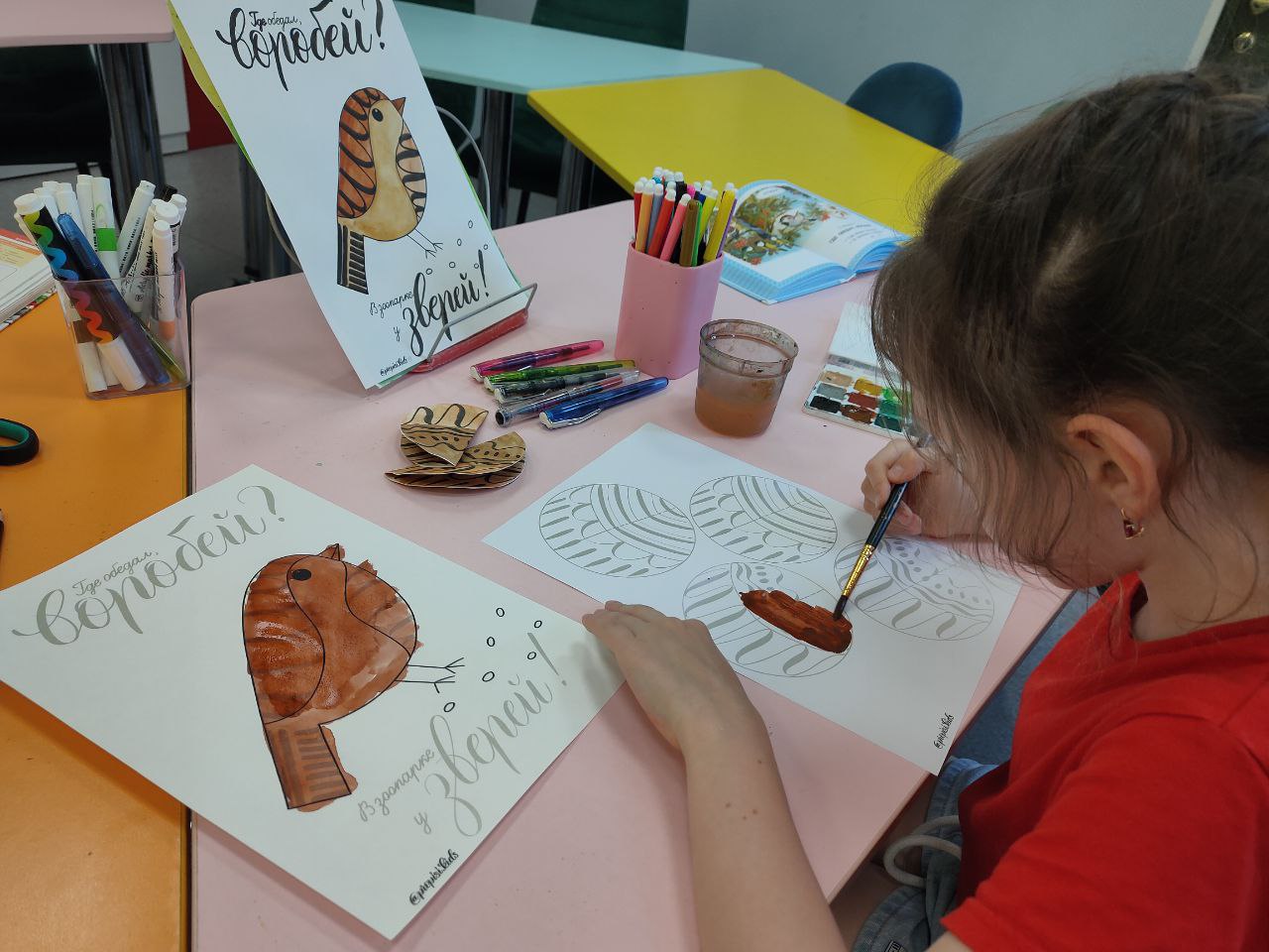 Как же дети любят участвовать в творчестве взрослых! Их тут же охватывает желание присоединиться к общему делу. В библиотеке после уроков школьники с азартом помогают украшать помещение и создают яркие картины, посвящённые матушке-зиме. #ЗимавПодмосковье