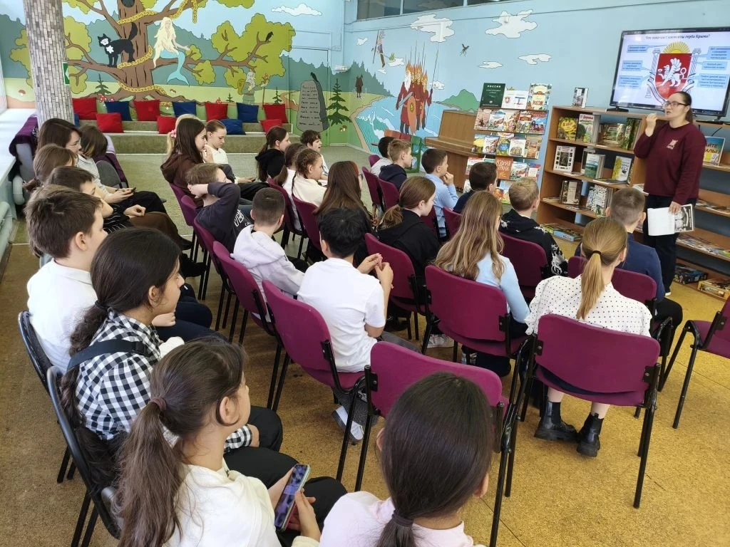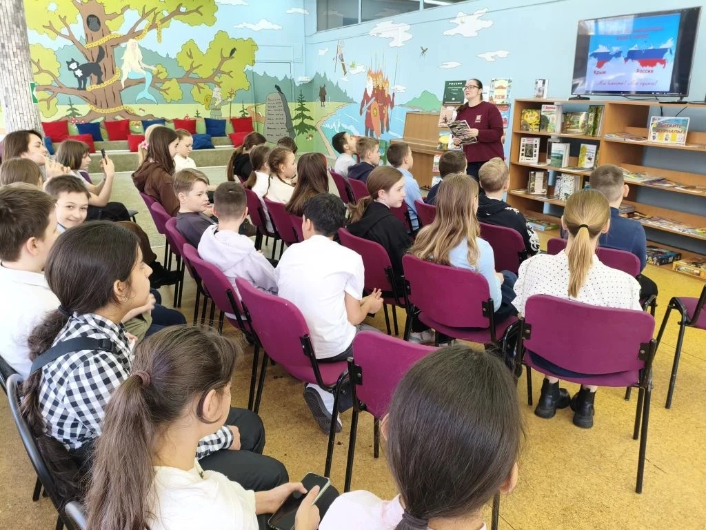 Ко Дню воссоединения Крыма с Россией в библиотеке для учащихся 5 А класса МБОУ СОШ № 1 прошёл час гордости "Мы вместе! Россия и Крым". Библиотекарь рассказал участникам о том, что 18 марта 2014 года по итогам общенародного референдума был подписан Договор о принятии Республики Крым и города-героя Севастополя в состав Российской Федерации. Это решение стало знаковым в истории нашей страны и укрепило единство российской нации. После ребята совершили виртуальную экскурсию по достопримечательностям Крыма и смогли увидеть великолепные виды знаменитых памятников: Ласточкино гнездо, гора Ай-Петри. Затем школьники вспомнили поэтов и писателей, художников, которые часто посещали Крым, познакомились с книгами, посвящёнными России, родной стране. Ребята рассказали, что с Крымом связаны судьбы и творчество таких писателей, как А. С. Пушкин, Л. Н. Толстой, А. П. Чехов, И. А. Бунин, посмотрели видеопрезентацию.