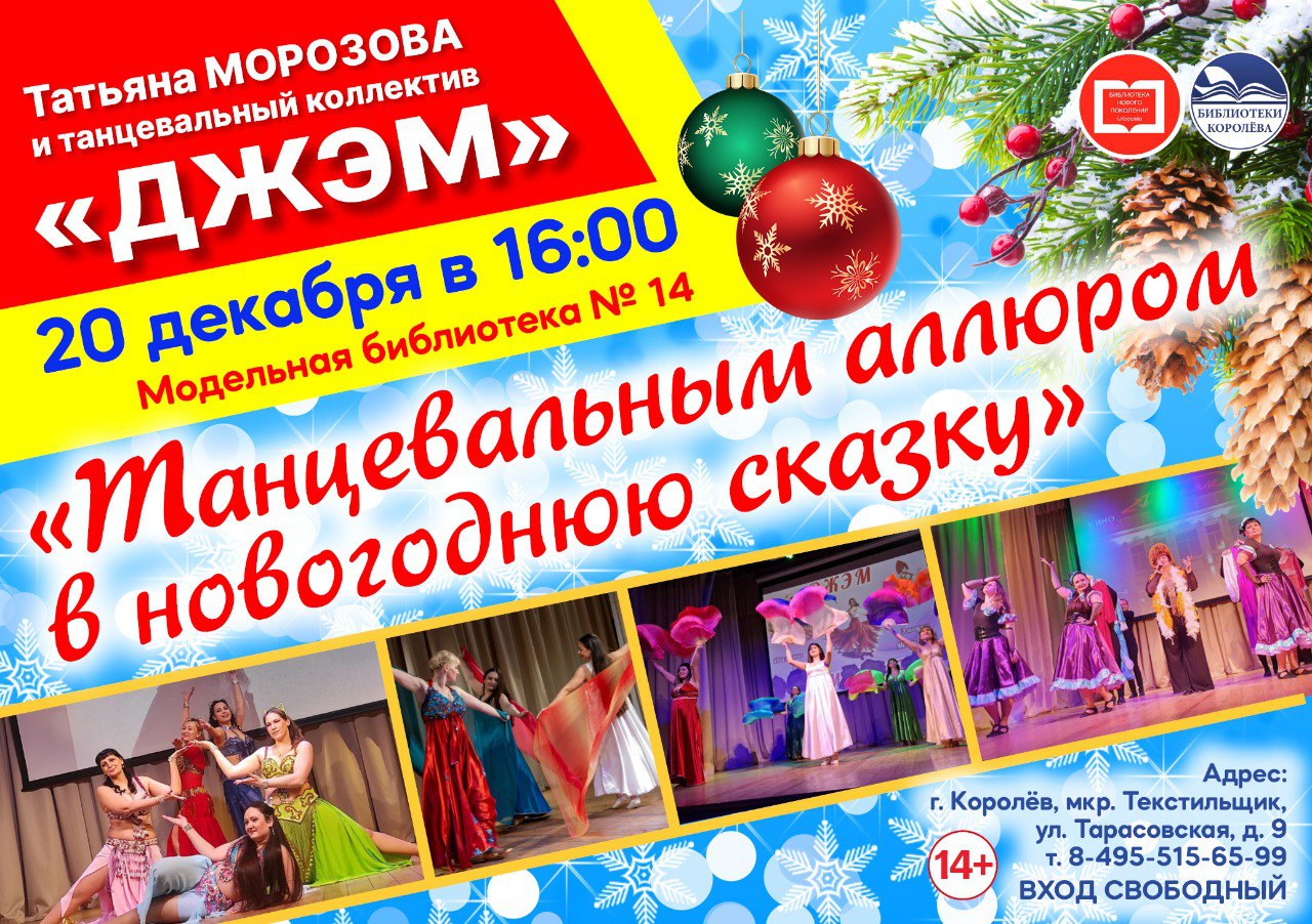 В преддверии Нового года приглашаем вас на новогодний концерт "Танцевальным аллюром в новогоднюю сказку "танцевального коллектива "ДЖЭМ" под руководством Татьяны Морозовой.