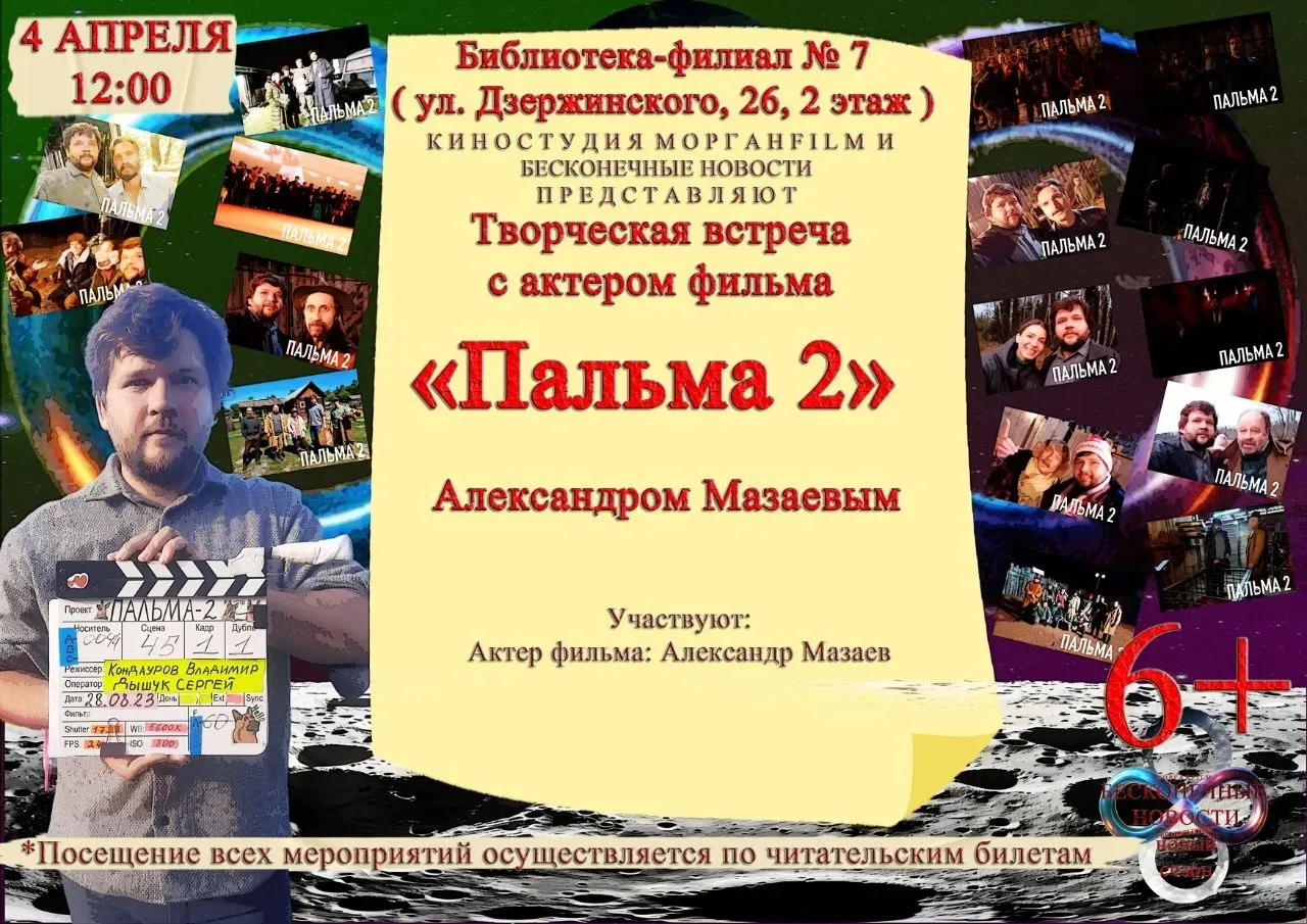 4 апреля приглашаем вас на творческую встречу с актёром фильма "Пальма 2" Александром Мазаевым.