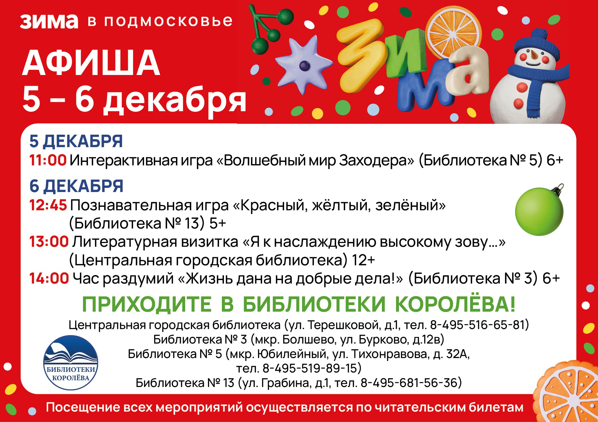 Декабрь – это самое время достать с книжных полок и перечитать волшебные зимние сказки и стихотворения. Сотрудники библиотеки предложат ребятам вспомнить хорошо известные народные и авторские сказки о зиме. Также познакомят юных читателей с новыми книгами, которые могут занять достойное место среди любимых классических новогодних произведений.