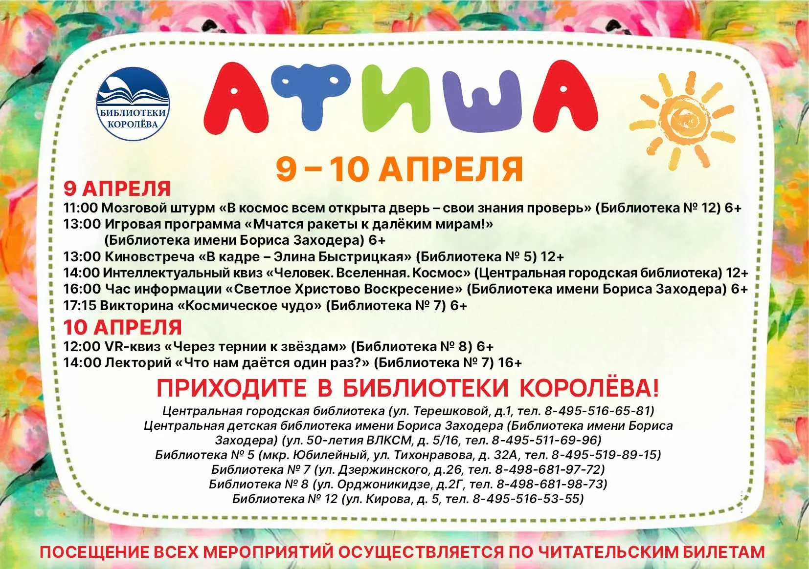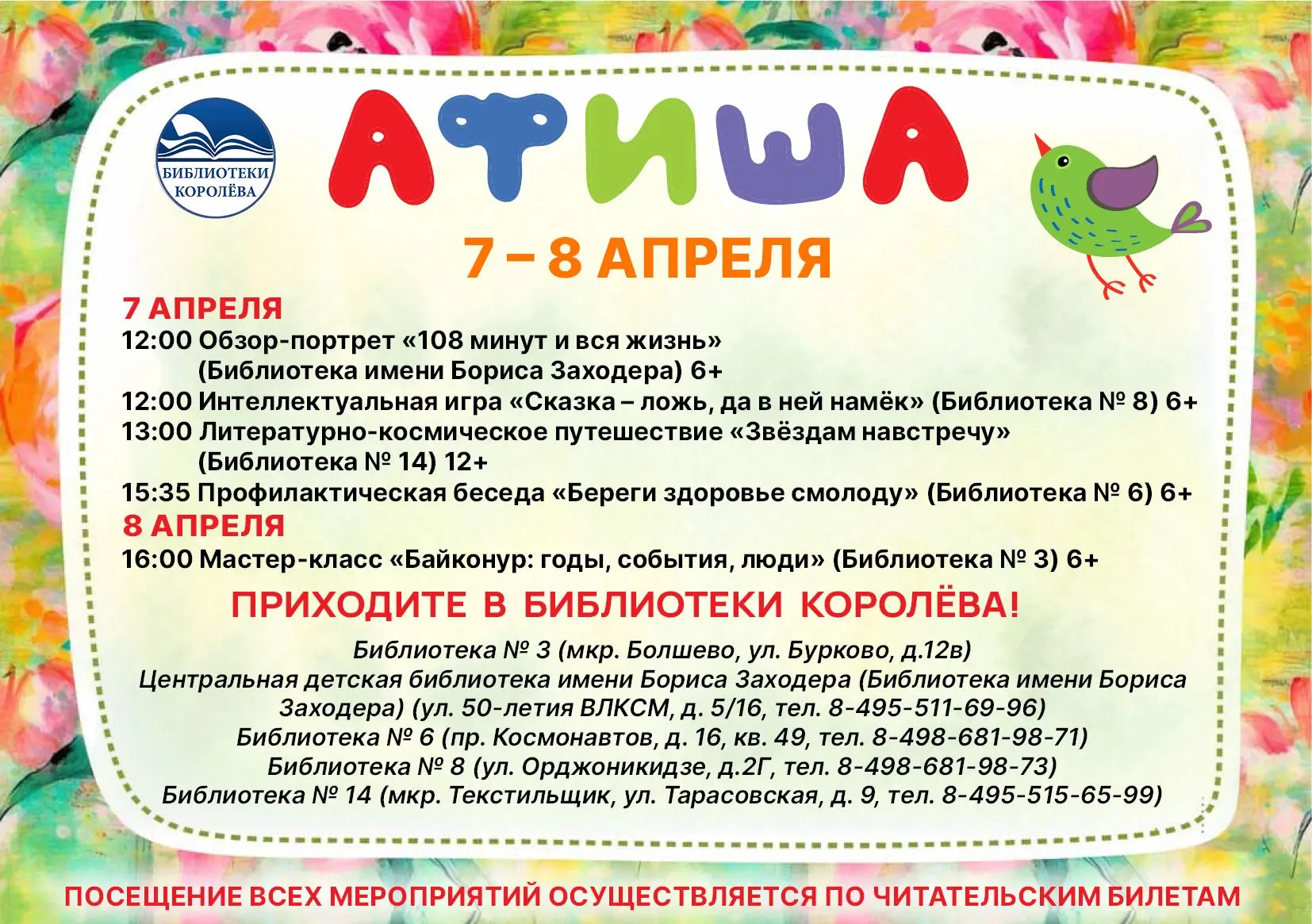 Посещение мероприятия осуществляется по читательским билетам.