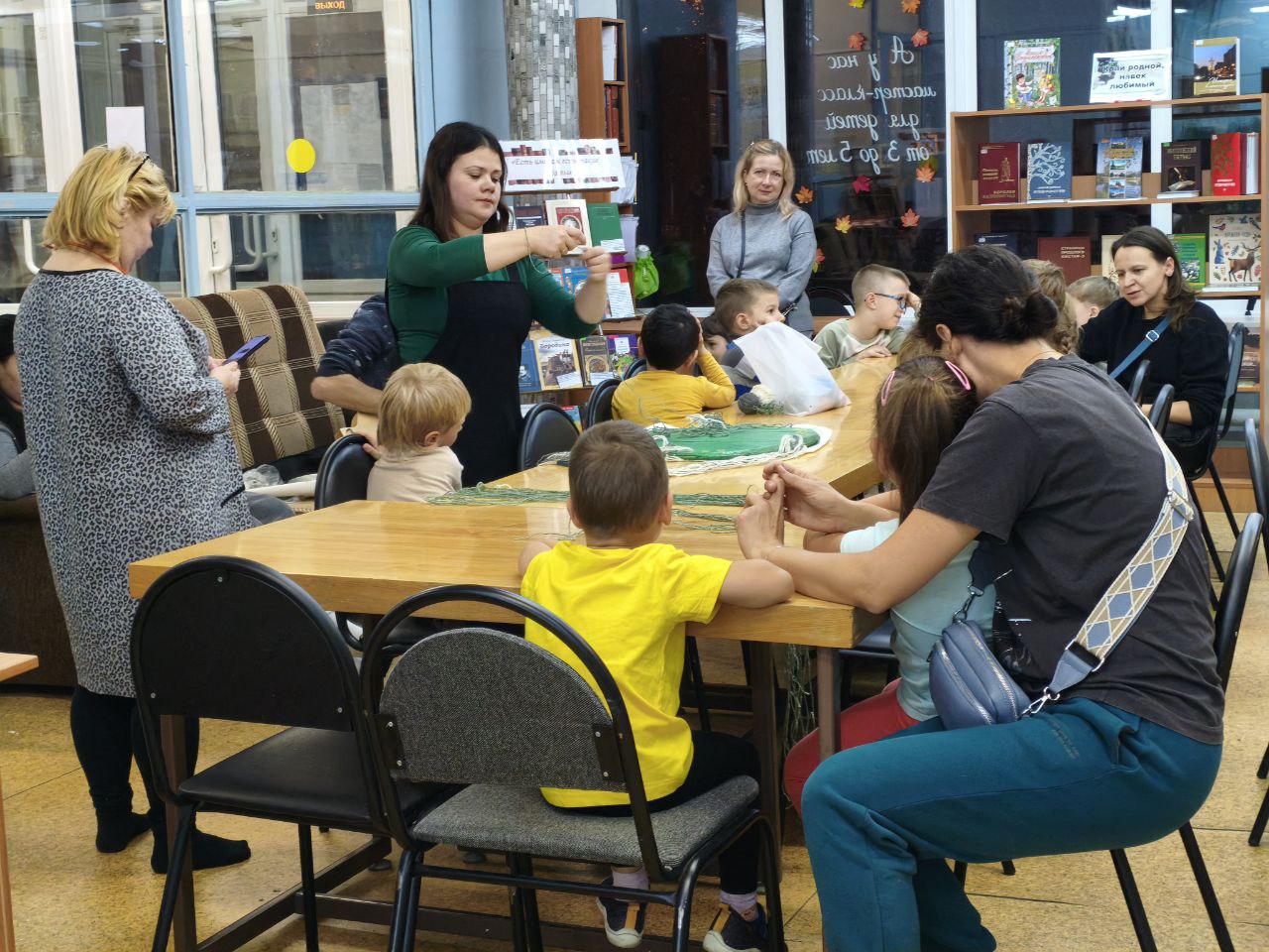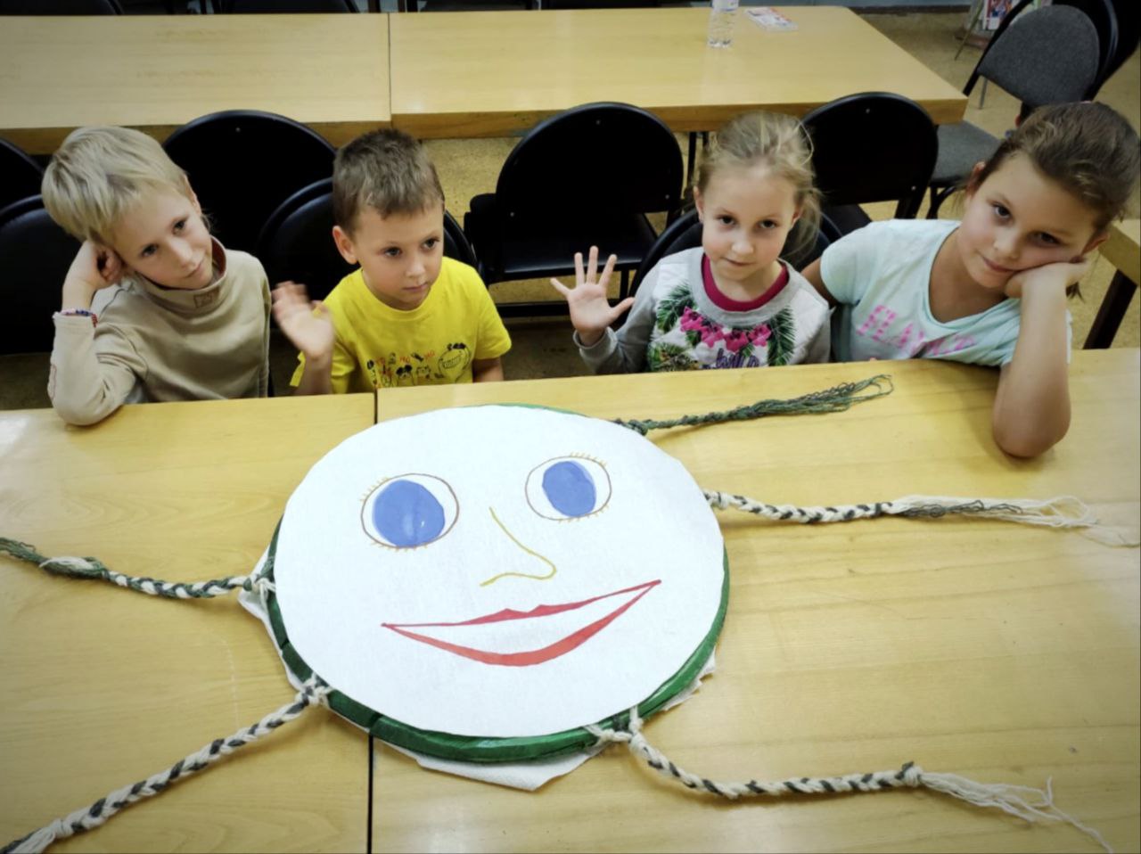 После познавательной части дети вместе с родителями приняли участие в мастер-классе, где заплетали косы на заранее подготовленном круге. В результате у них получилось яркое солнышко, от которого ребята забрали по лучику домой.