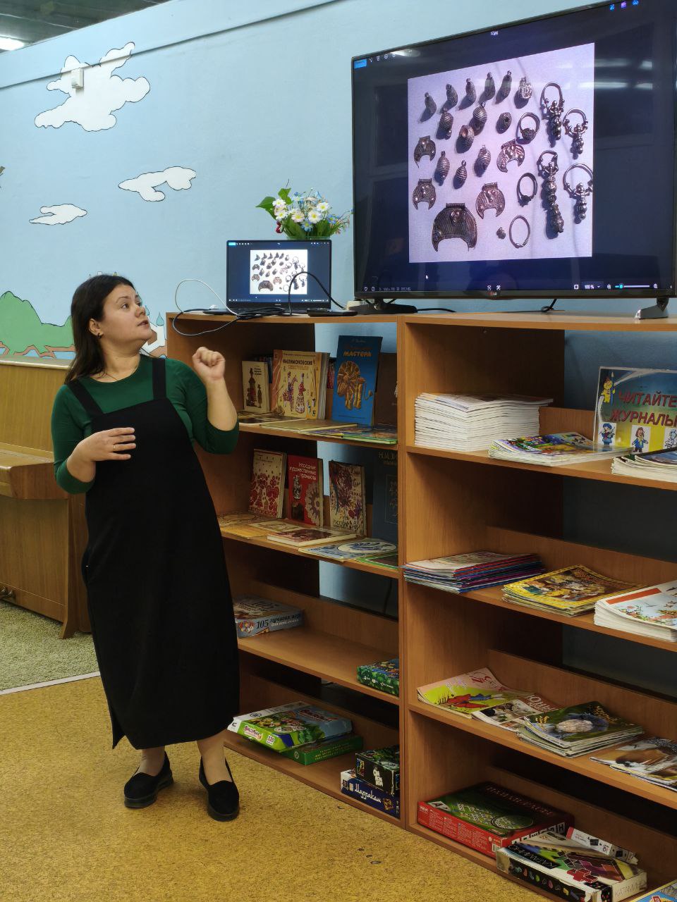 В библиотеке состоялась встреча в рамках дружеских мероприятий "Спутника". Участники узнали о профессии археолога и жизни людей в Древней Руси, познакомились с реконструкцией одежды, а также увидели головные уборы, украшения и обувь древних славян. Кроме того, они познакомились с различными ремёслами того времени.