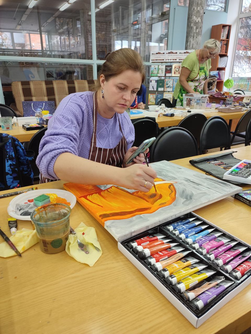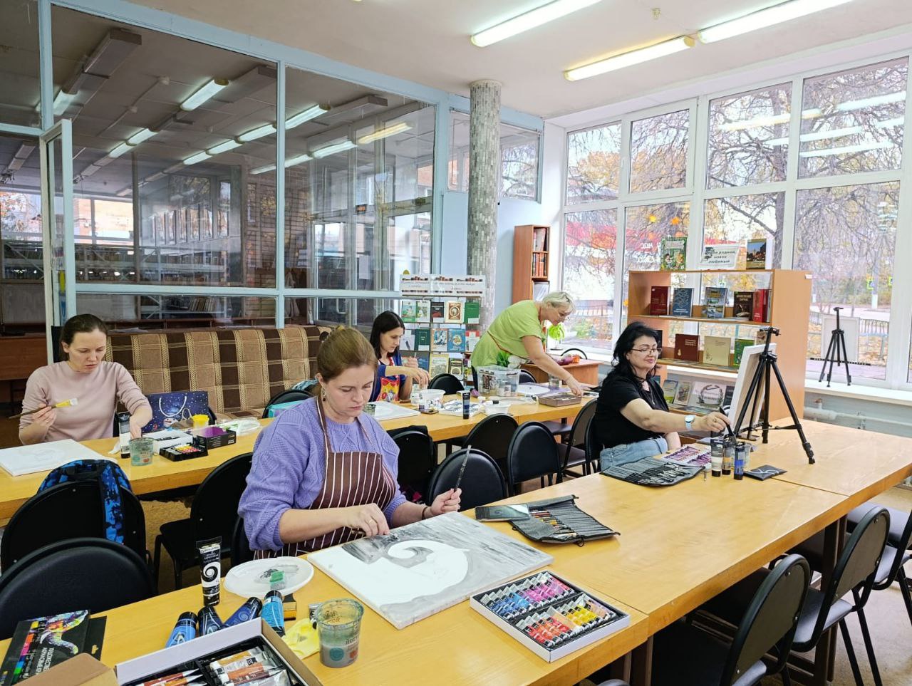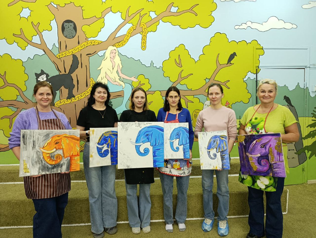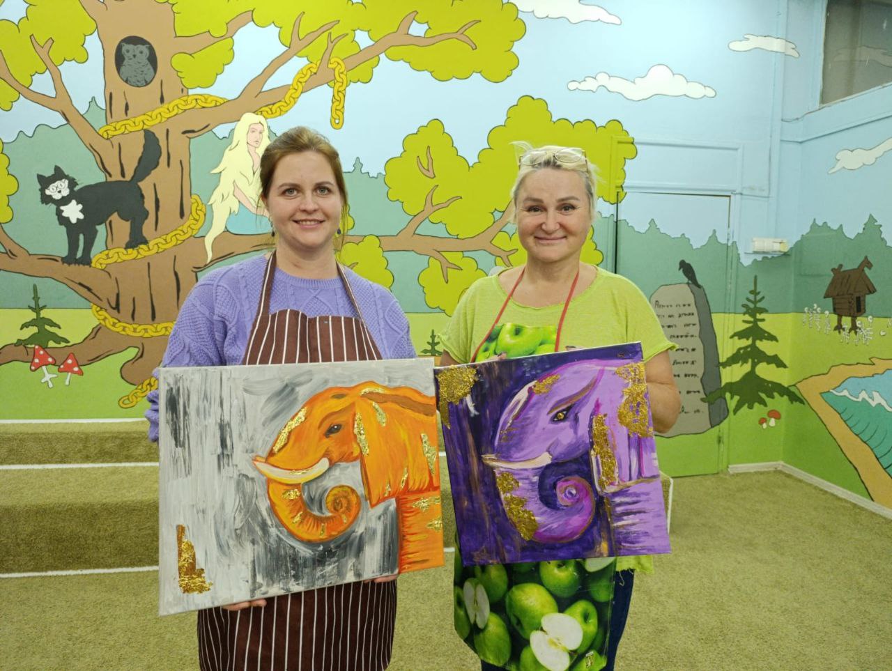 В библиотеке для мам юных читателей прошёл мастер-класс по написанию интерьерной картины акрилом "Слон в золотом сиянии". Каждый участник нашёл своего уникального слона: кто-то классического голубого, а кто-то – нежного розового или энергичного оранжевого. А волшебной изюминкой стали золотые вставки по фону, которые заставили картины сиять и переливаться на свету. Получились не просто рисунки, а настоящие арт-объекты для дома!
