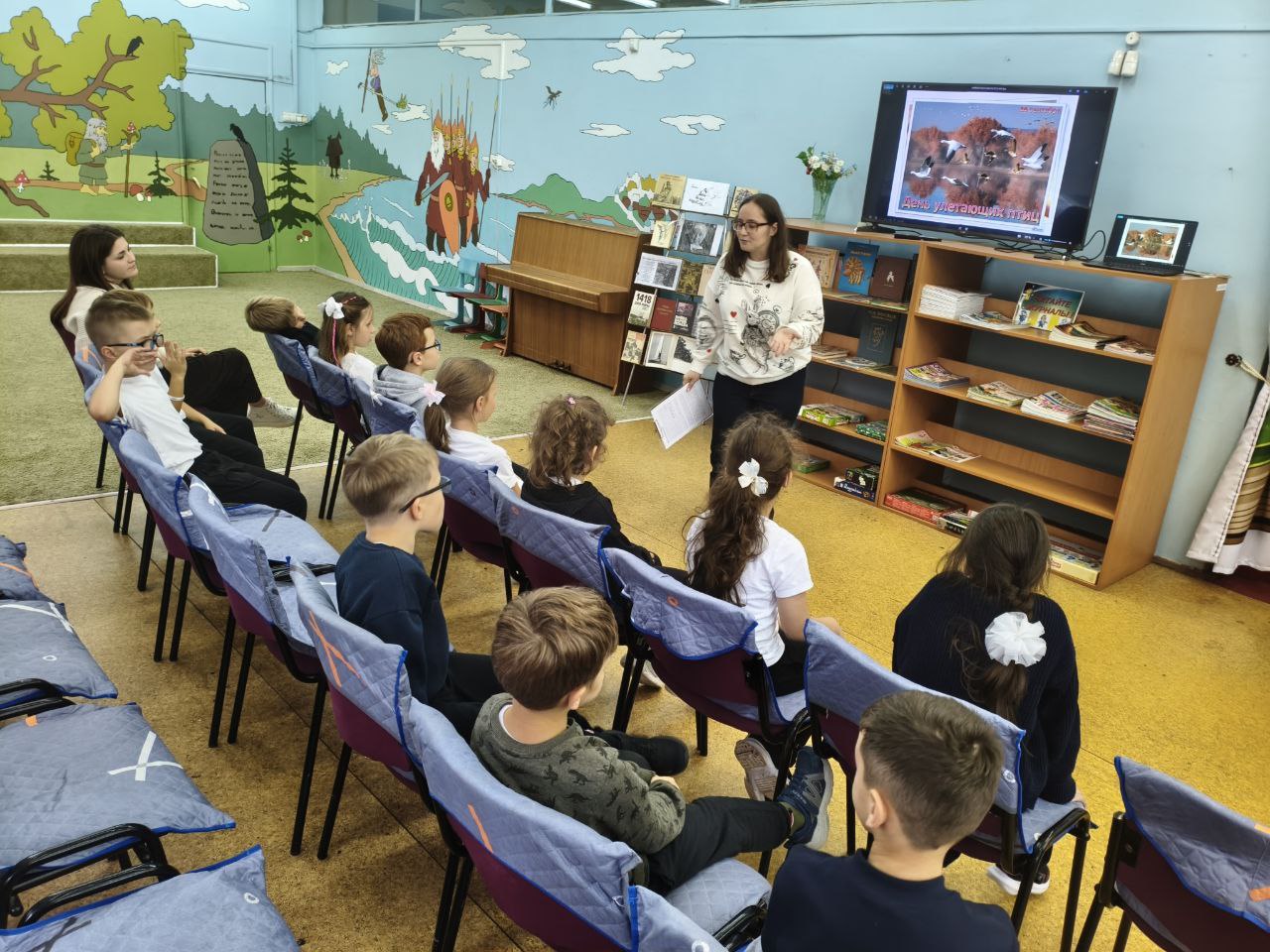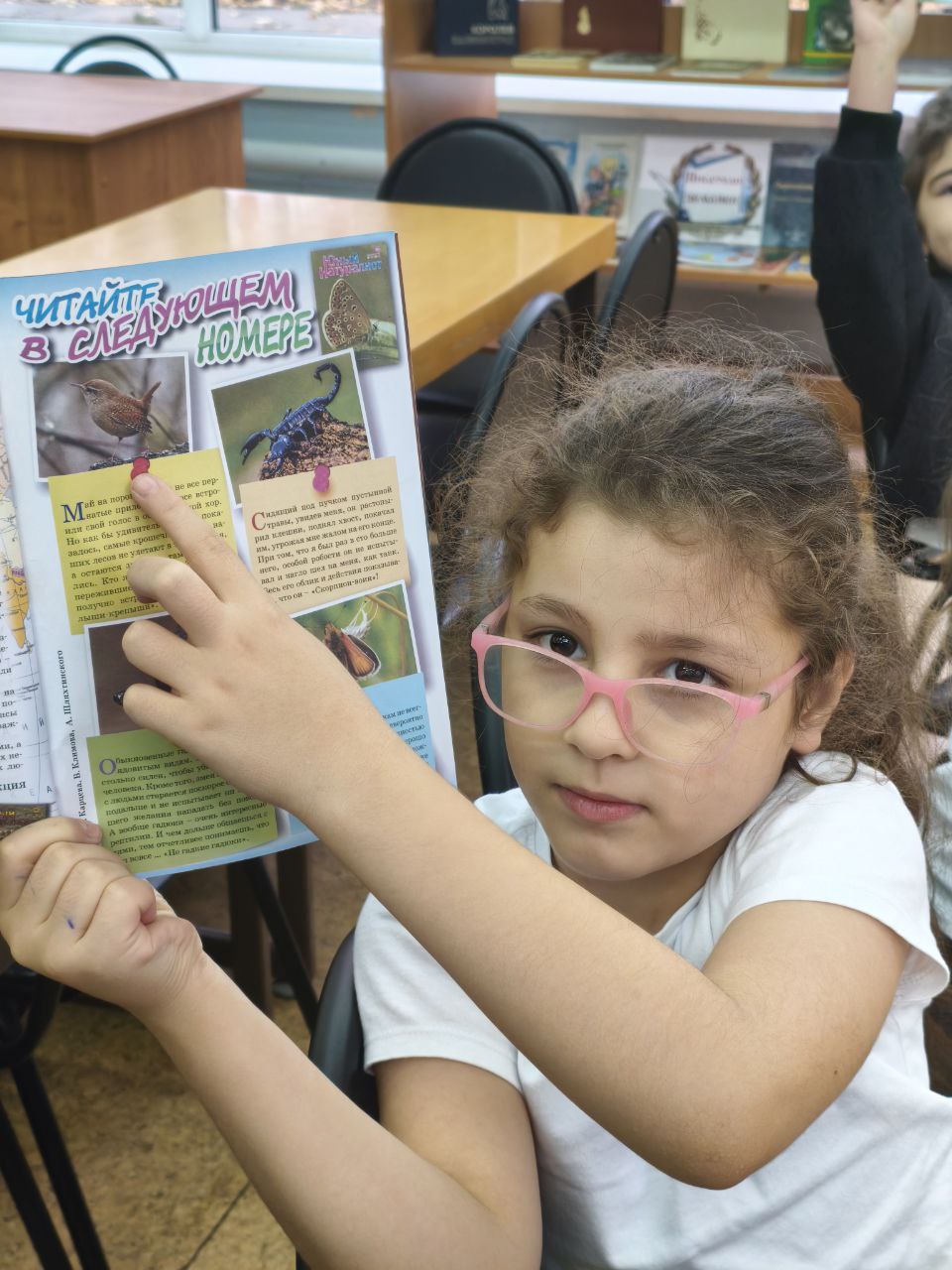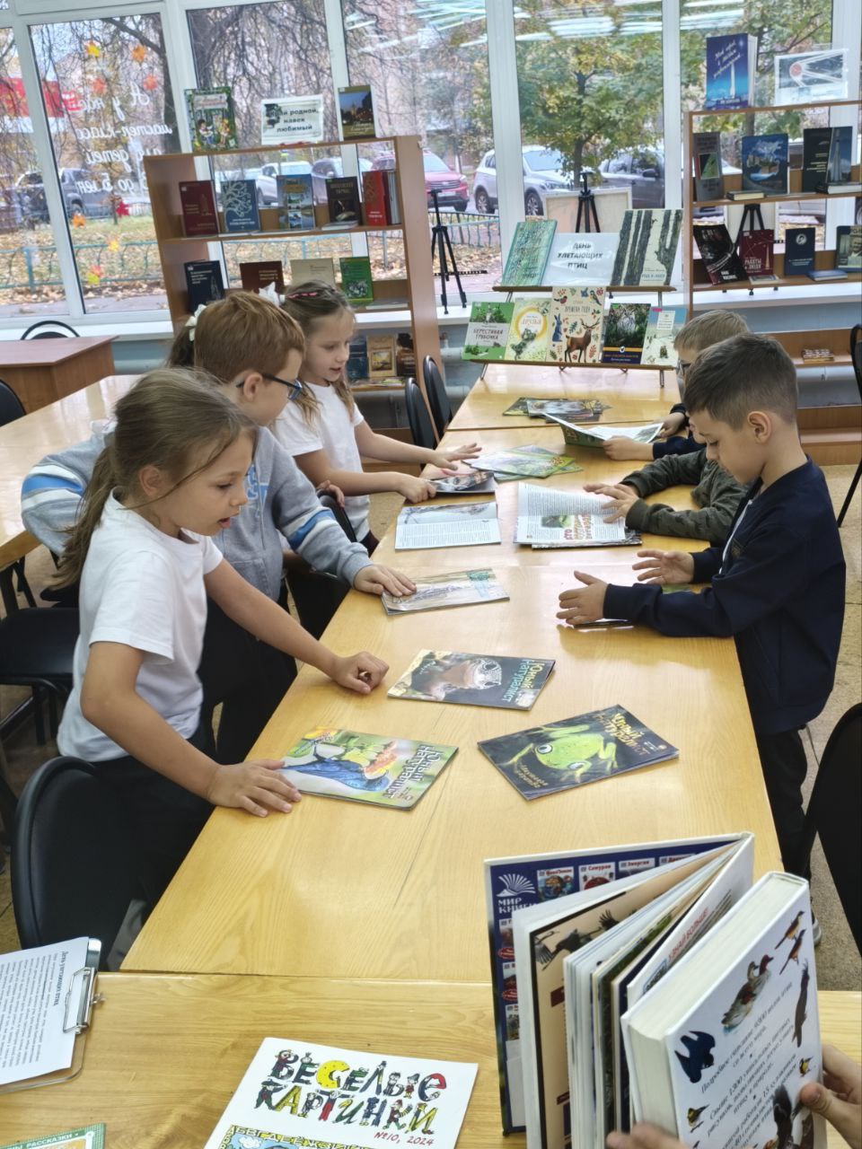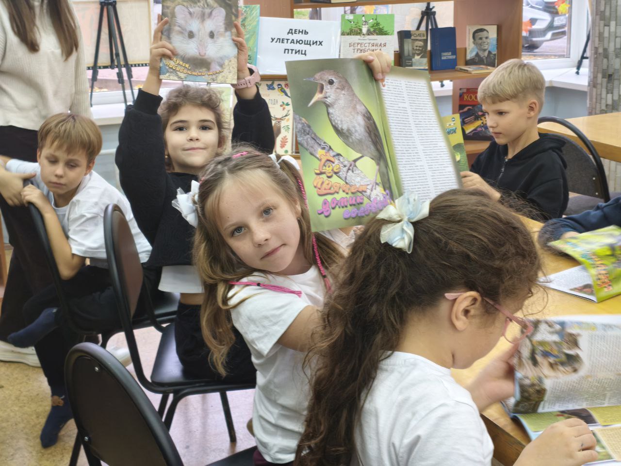 В библиотеке собрались ребята из продлённой группы школы № 1, чтобы исследовать журналы "Юный натуралист" и узнать больше о перелетных птицах России. Библиотекарь рассказала о различных перелётных птицах, обитающих в Подмосковье, выделив их яркий окрас, особенности образа жизни и питания. Школьникам прочитали стихи известных детских поэтов о пернатых друзьях, а также предложили вопросы для проверки понимания прочитанного. Встреча сопровождалась увлекательной видеопрезентацией.