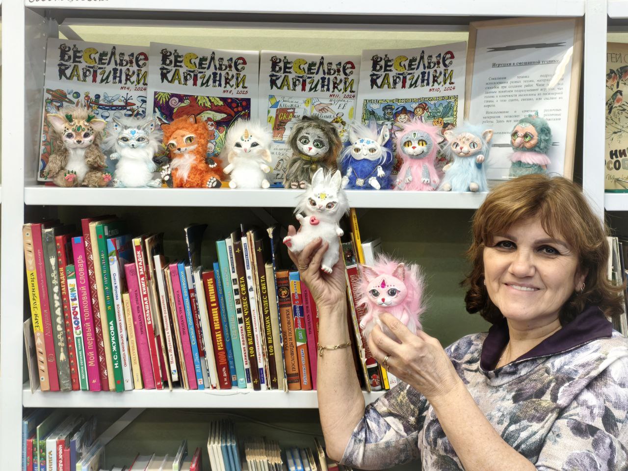 В библиотеке распахнула свои двери выставка Светланы Хвойко "Игрушки в смешанной технике", где фантазия обретает осязаемую форму. Смешанная техника, словно алхимия, объединяет в себе разные материалы и способы, рождая на свет уникальные произведения. Здесь полимерная глина преображается в выразительные лица и грациозные конечности, а тело, сотканное из нитей и шерсти, дарит тепло и уют. Каждая игрушка – это маленький мир, созданный воображением автора. Сочетание различных фактур и цветов открывает безграничные горизонты для творчества, где единственным ограничением становится лишь полет фантазии. Все эти волшебные создания рождены руками талантливой Светланы Хвойко, чья любовь к искусству оживляет даже самые обыденные материалы.