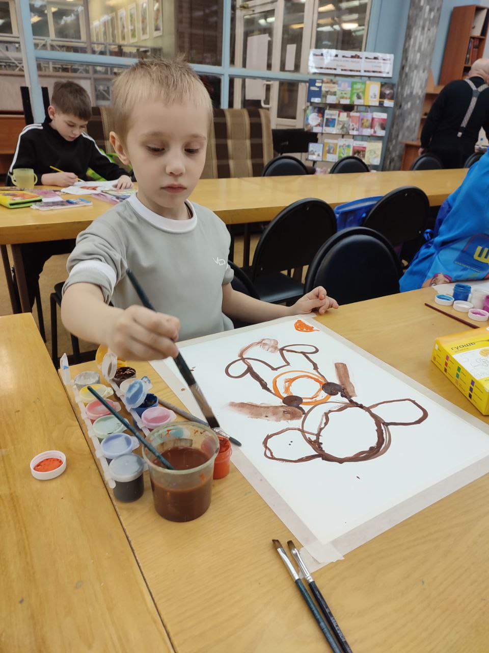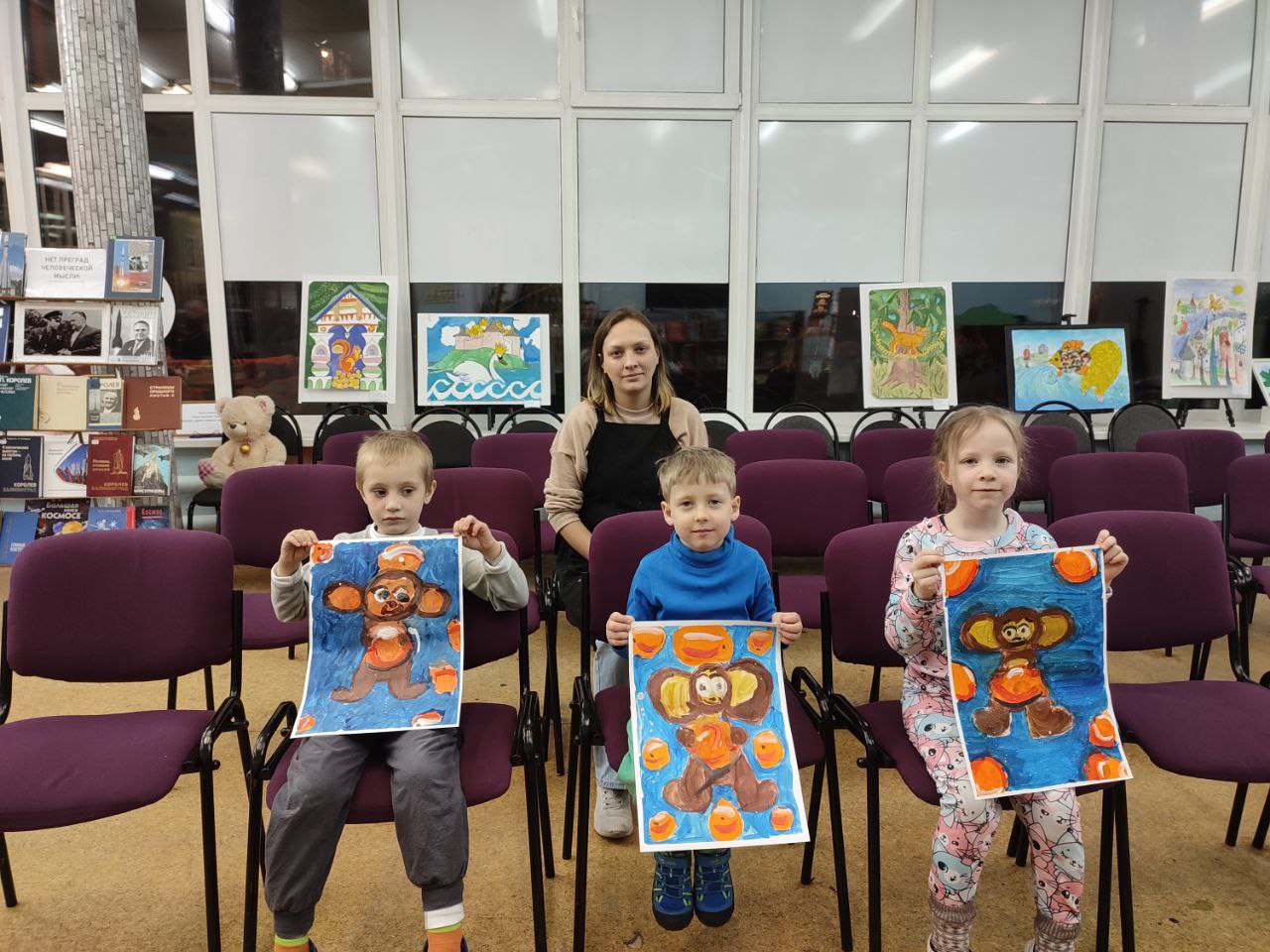В библиотеке прошёл кружок рисования "Чебурашка с апельсинами!". Наши маленькие художники окунулись в сказочный мир, где педагог легко показал, как оживить милого Чебурашку на бумаге. В центре листа, на ярком синем фоне, стоит пушистый герой, крепко держащий сочный апельсин в лапках, а вокруг него разбросаны яркие плоды, словно солнечные искры радости. Каждый мазок кисточки стал заклинанием: дети тренировали пальчики, развивая мелкую моторику, воображение и любовь к цветам, превращая простой лист в портал дружбы и добра. Шедевры сияют теплом и улыбками – Чебурашка готов к новым приключениям вместе с нашими творцами!
