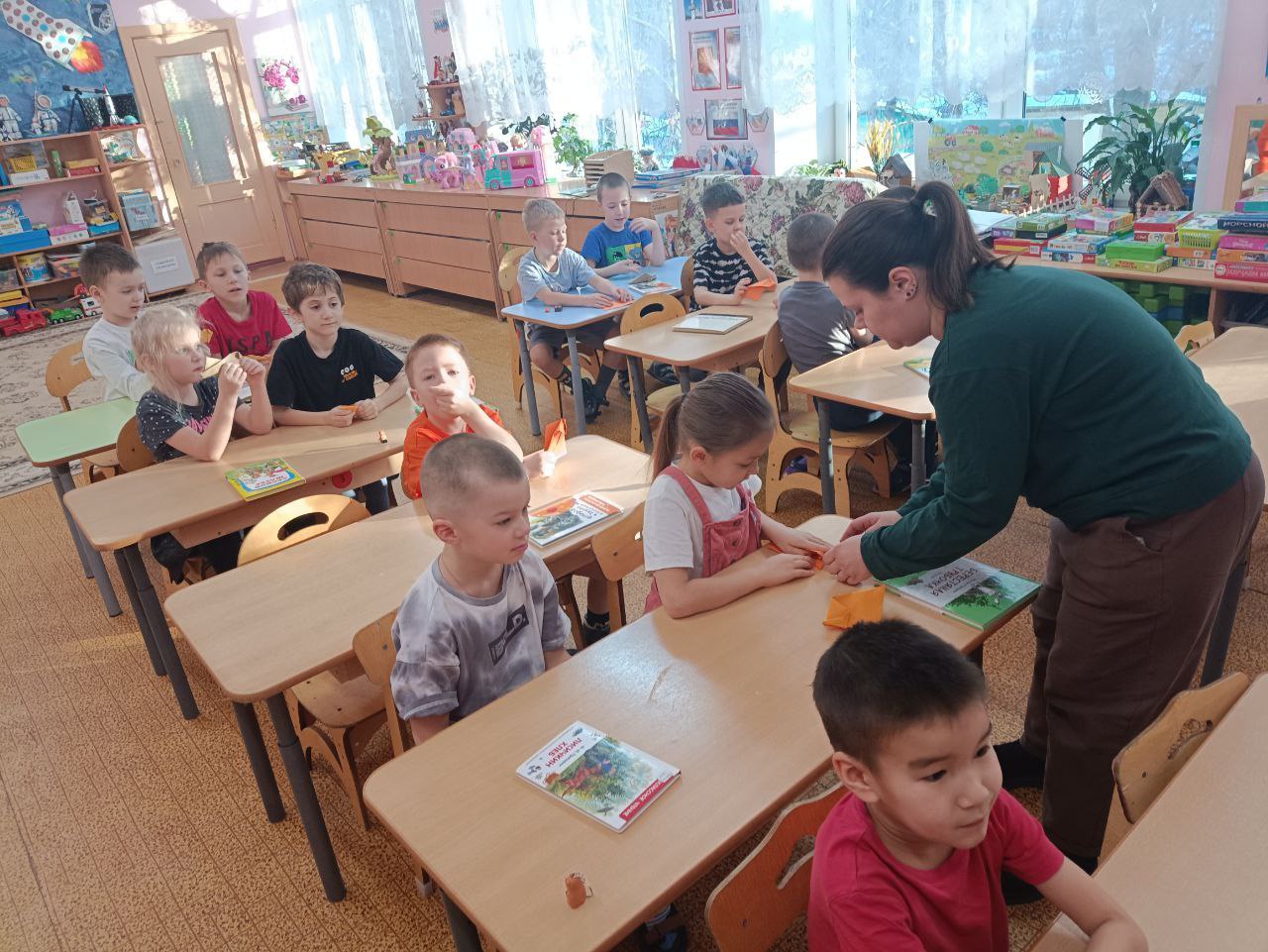 Мобильная читальня библиотеки познакомила воспитанников МБДОУ СОШ № 1 с писателем М. М. Пришвиным, родившимся 4 февраля 1873 года. На занятии кружка "Зелёная лампа" дети узнали о том, как Михаил Пришвин любил животных и о том, как он любил наблюдать за природой, гуляя по лесу; послушали рассказ "Ребята и утята" и размышляли над его смыслом. Затем мальчики и девочки захотели поделиться историями о том, как они вместе с родителями, бабушками и дедушками помогают бездомным животным. На занятии кружка "Модуль" каждый из ребят сделал себе по уточке в технике оригами.
