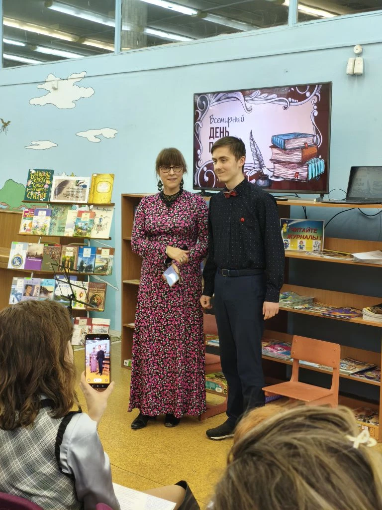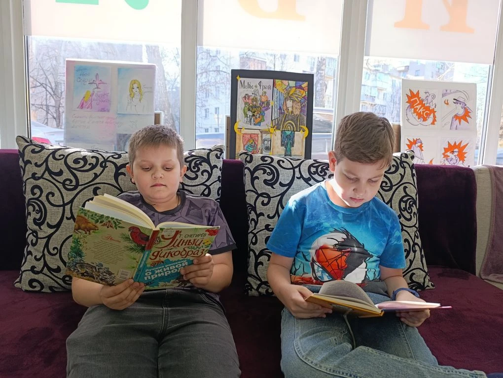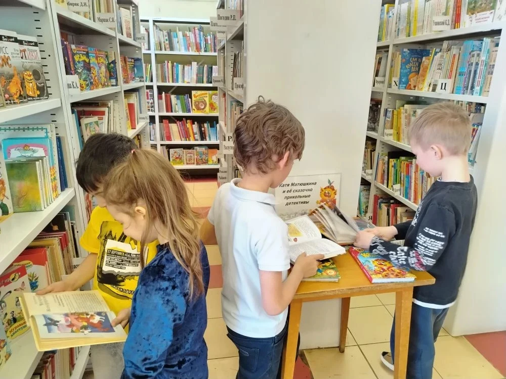 В субботний тёплый день в библиотеке юные читатели знакомились с произведениями на книжных полках, на которых собраны самые увлекательные и захватывающие миры, предлагающие погрузиться в приключения, исследования, фантазии и знания. Разнообразие обложек и названий книг на полках создают уютную атмосферу, напоминающую о бесконечных возможностях для путешествий. Каждая картинка на книжной полке словно маленькое окно в другой мир, который можно открыть, лишь прочитав следующую страничку.