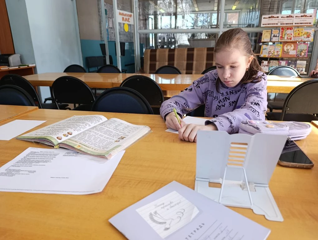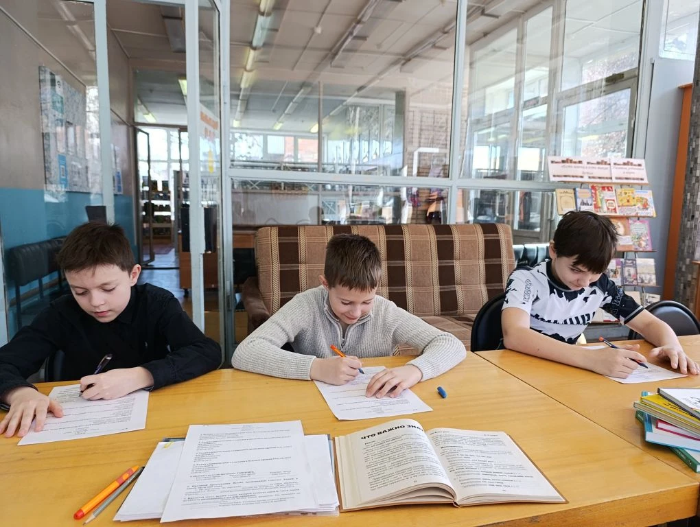В библиотеке ребята разных возрастов выполняли разноуровневые задания по русскому языку.