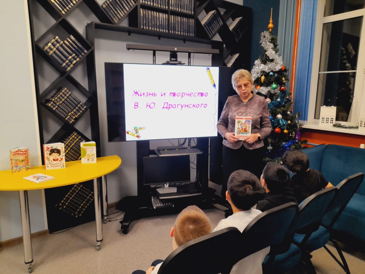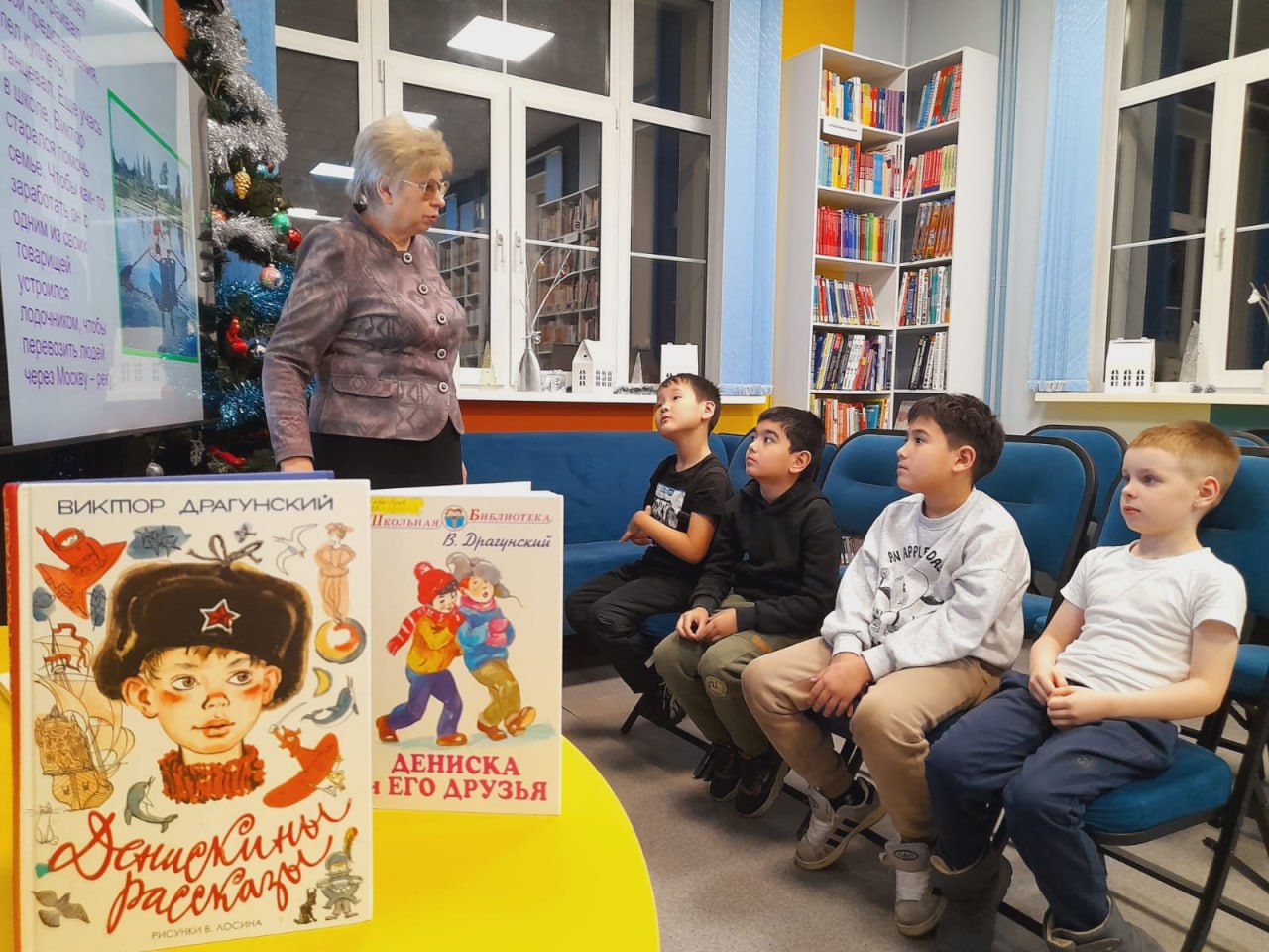 В библиотеке прошёл литературный час на тему "Весёлые ребята Драгунского". Виктор Драгунский занимает по праву достойное место в детской литературе не только отечественной, но и мировой. Его добрые, весёлые истории про девчонок и мальчишек читаются детьми с интересом и удовольствием. В замечательных рассказах Виктора Драгунского приоткрывается завеса над самой обыкновенной жизнью ребят: как они общаются с друзьями и подружками, как ведут себя с родителями, в какие попадают интересные и забавные ситуации. Сотрудник библиотеки познакомила ребят с жизнью и творчеством знаменитого детского писателя Виктора Юзефовича. А далее ребята разгадывали кроссворды, отвечали на вопросы викторины по произведениям любимого автора. В завершение с удовольствием окунулись в мир полный приключений вместе с библиотекарем, прочитав рассказ "Что я люблю".