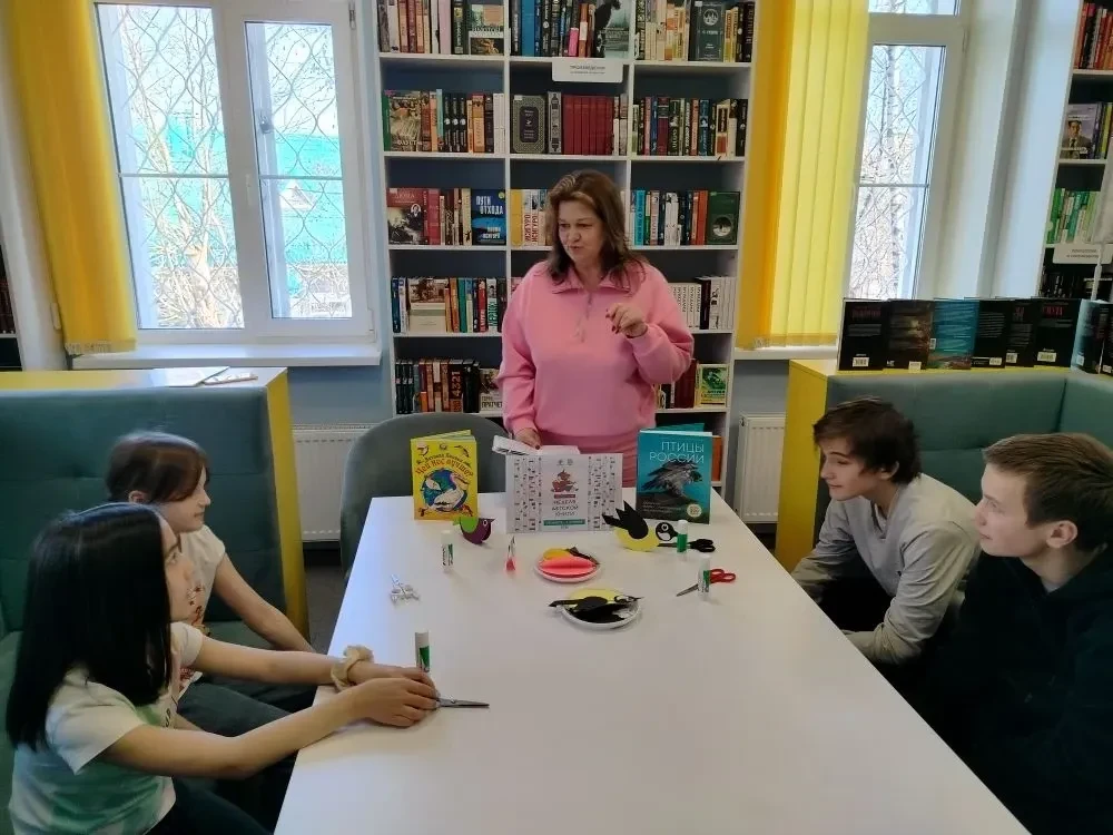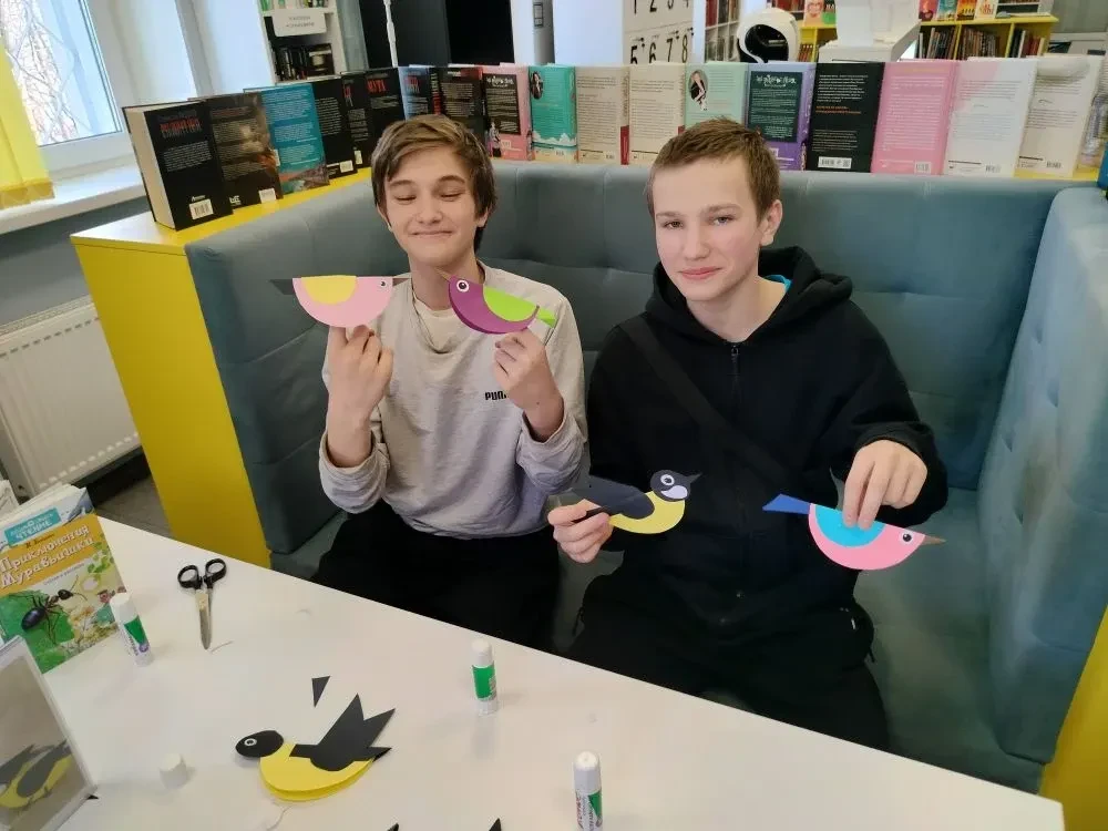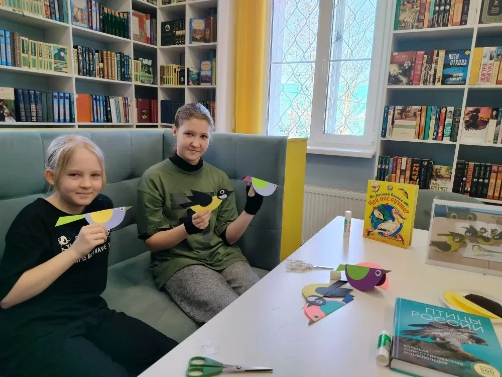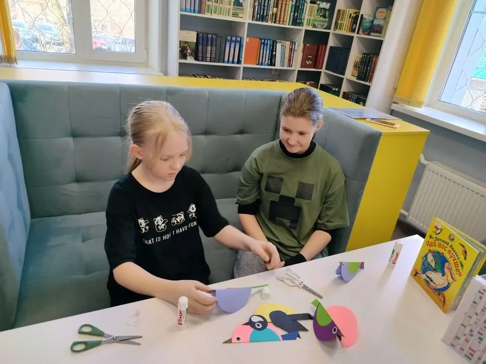 Птицы – вестники радости. Каждый год они приносят нам на своих крыльях весну. Они верные наши помощники, защитники лесов, полей, садов и огородов. Их мелодичные, весёлые, звонкие песни, яркое оперение оживляют природу, вселяют в нас бодрость и радость. В библиотеке в рамках кружка "Мастерилка" прошёл творческий мастер-класс по изготовлению птичьих фигурок из бумаги "Птички-невелички" к Международному дню птиц. Сотрудник библиотеки рассказала об истории праздника, о важной роли птиц в природе и жизни человека, а также вспомнила литературные произведения, где встречаются образы пернатых. Далее ребята обсудили интересные факты о пернатых вестниках весны, поговорили о птицах нашего региона и об особенностях их кормовой базы. После познавательной беседы все принялись за изготовление птичьих фигурок. У каждого участника мастер-класса получилась яркая и красивая птичка.