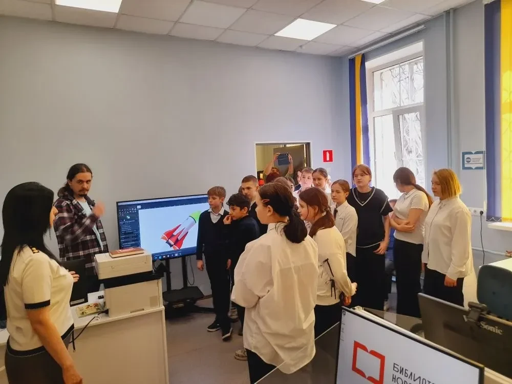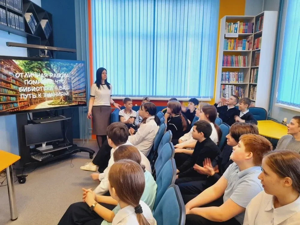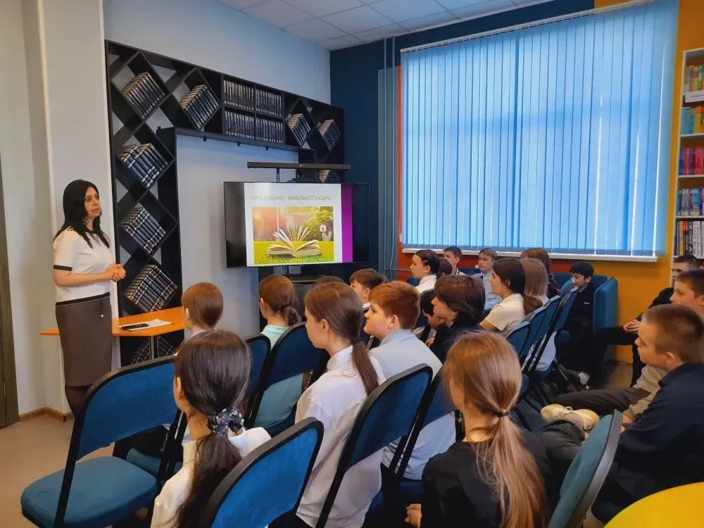 В библиотеке по реализации Единой модели профориентации "Билет в будущее" для учащихся 6 класса МБОУ СОШ № 22 прошёл библиотечный урок-экскурсия по профориентации школьников на тему "Моя профессия – библиотекарь". На интерактивном уроке-экскурсии сотрудники библиотеки познакомили ребят с творческой и интересной профессией – библиотекарь. Школьники узнали, как работает библиотечный робот, задали ему вопросы и получили рекомендации для чтения. В читальном зале и на абонементе участников мероприятия познакомили с алфавитным каталогом и научили им пользоваться. Далее продемонстрировали возможности компьютерного зала на практике, а в медиапространстве ребята узнали о самых знаменитых библиотеках в мире. Затем ребята с большим удовольствием приняли участие в викторине "Мы идём в библиотеку", которая была представлена компанией ООО "Интерактивная проекция", где закрепили полученные знания. В заключение учащиеся познакомились с информацией, в каких учебных заведениях можно приобрести профессию библиотекаря.
