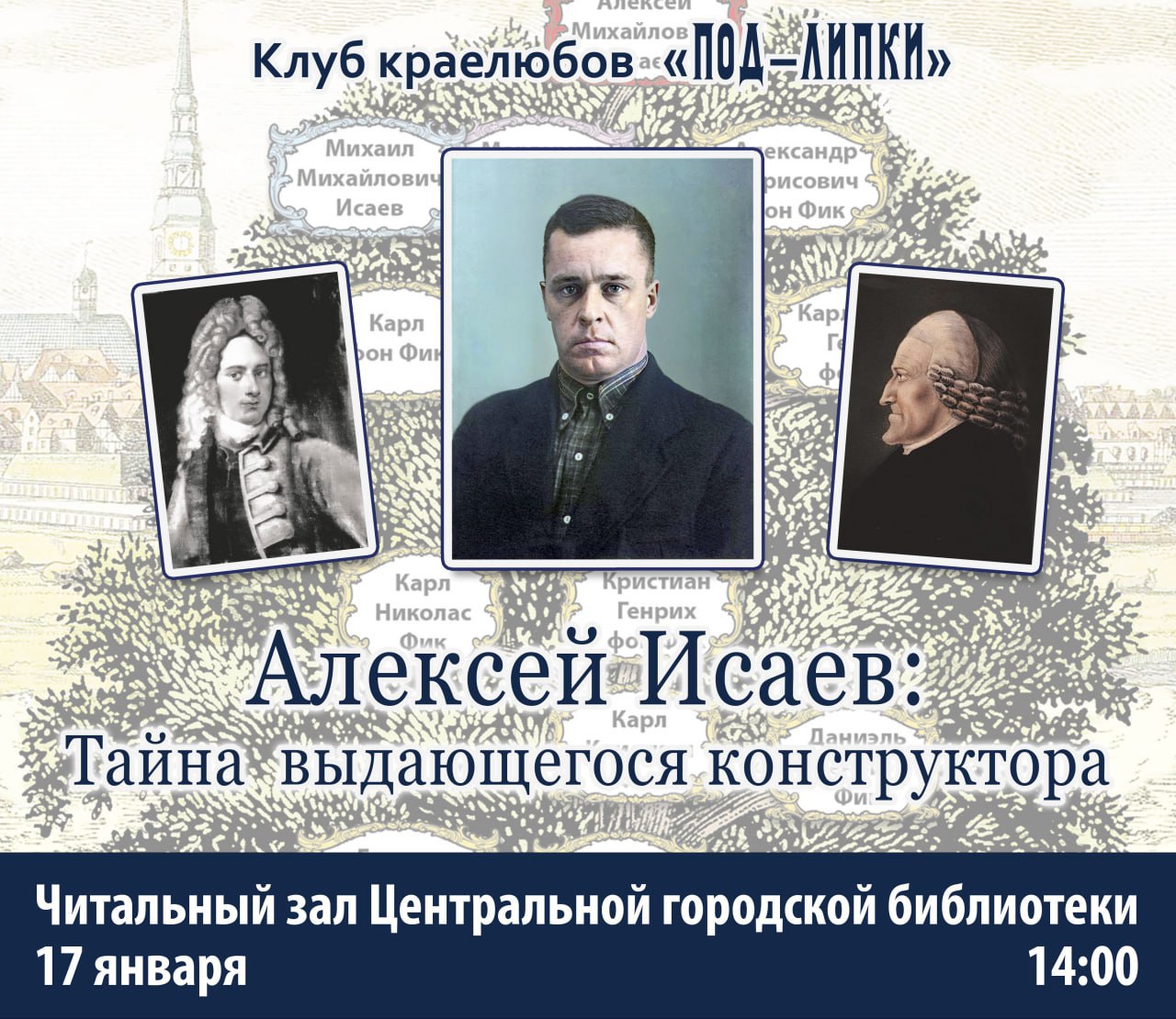 "Алексей Исаев: Тайна выдающегося конструктора" – встреча в клубе краелюбов "ПОД-ЛИПКИ"17.01.2026 начало в 14:00