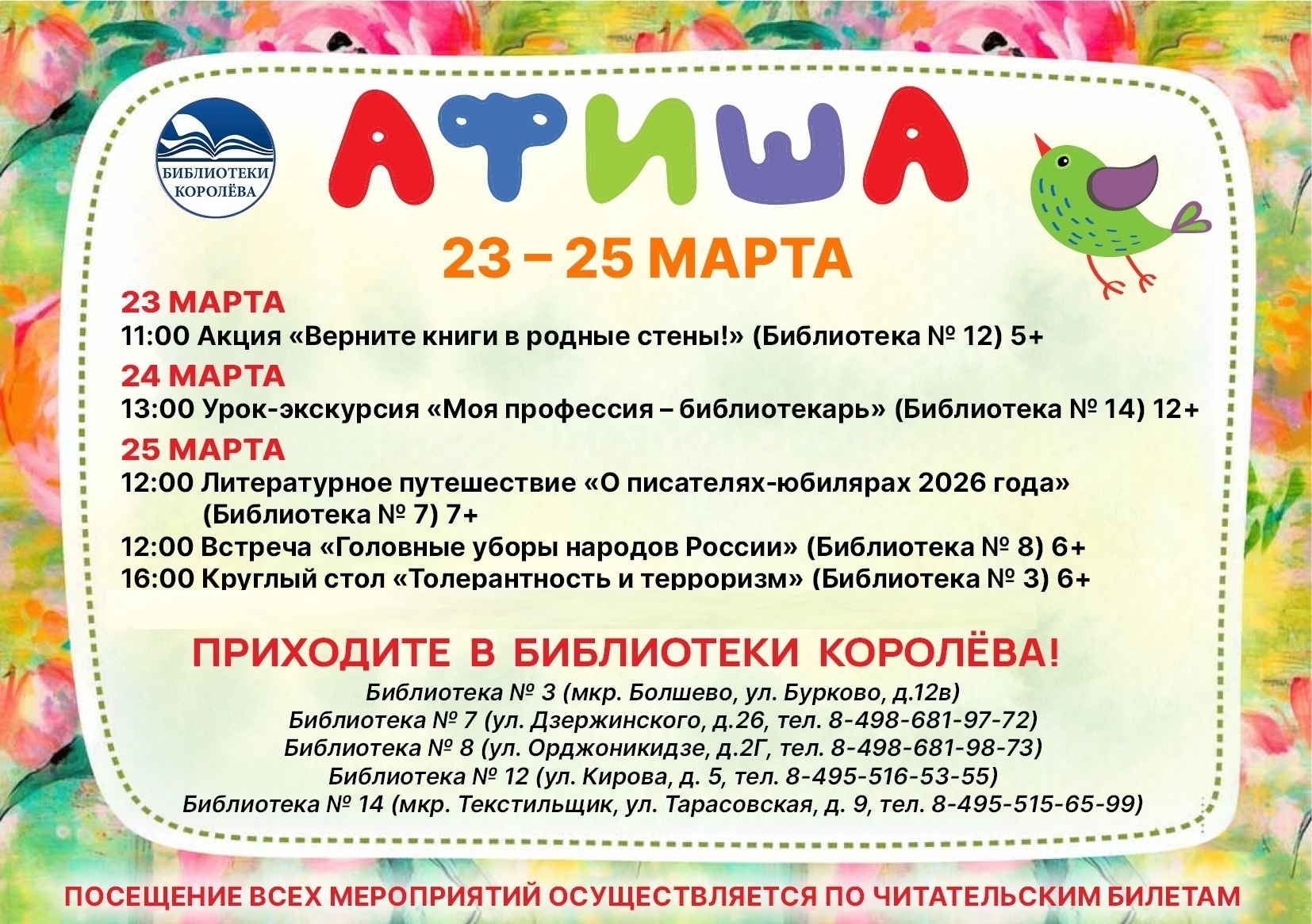 Афиша мероприятий 23 – 25 марта