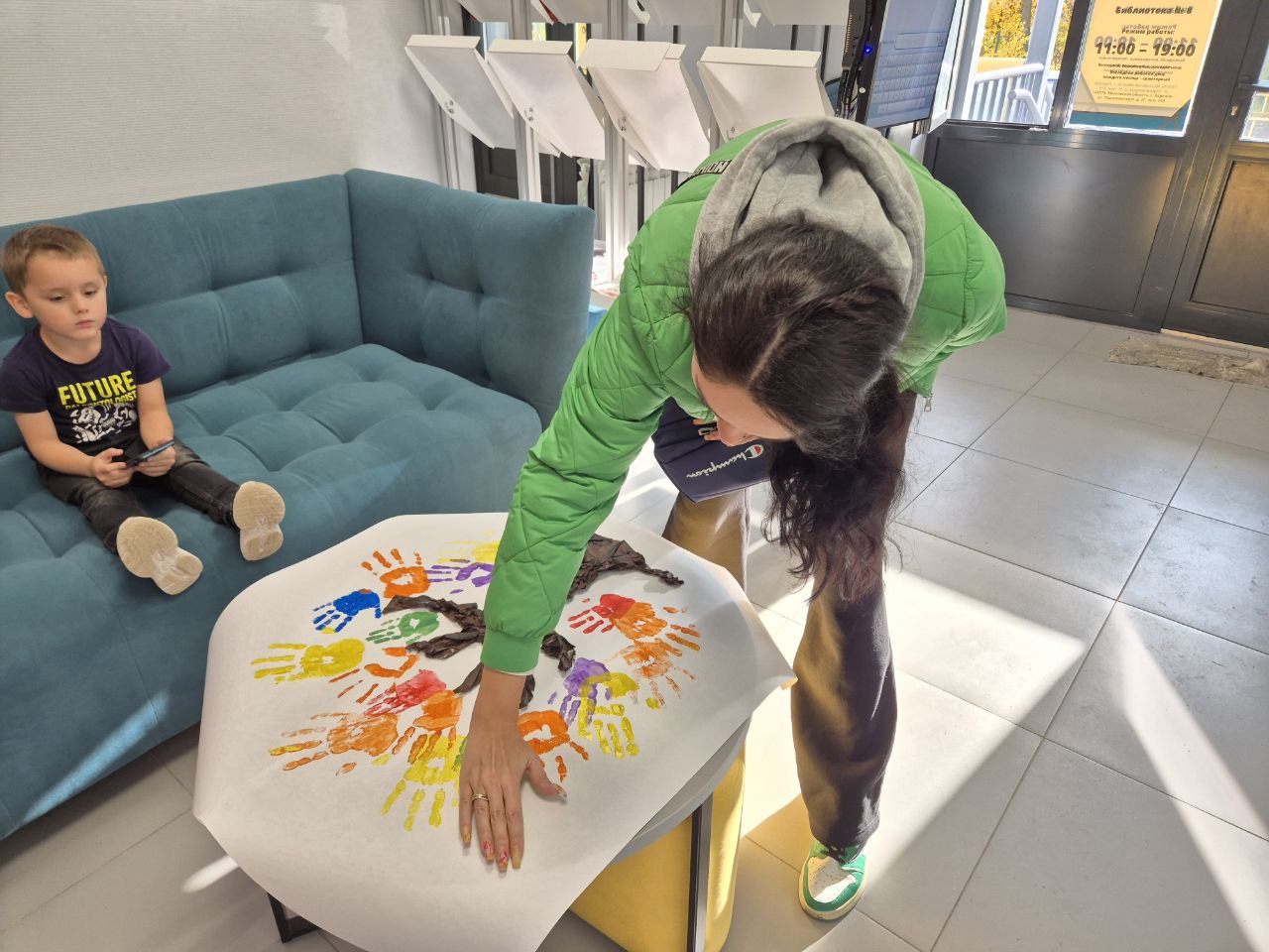 В библиотеке выросло Дерево дружбы. Акция приурочена ко Дню народного единства – празднику, объединяющему все народы России. Читатели, приходящие в библиотеку, могли поучаствовать в литературном гадании и оставить отпечаток своей ладошки на Дереве. Во время литературного гадания участники флешмоба В библиотеке выросло Дерево дружбы. Акция приурочена ко Дню народного единства – празднику, объединяющему все народы России. Читатели, приходящие в библиотеку, могли поучаствовать в литературном гадании и оставить отпечаток своей ладошки на Дереве. Во время литературного гадания участники флешмоба могли вытащить маленький свиток с цитатой писателей России и мира и так узнать, что их ждёт в ближайшее время. А отпечатки ладошек с удовольствием оставляли дети и взрослые, а Дерево стало символом единства, дружбы и силы нашей большой и многонациональной страны. вытащить маленький свиток с цитатой писателей России и мира и так узнать, что их ждёт в ближайшее время. А отпечатки ладошек с удовольствием оставляли дети и взрослые, а Дерево стало символом единства, дружбы и силы нашей большой и многонациональной страны.
