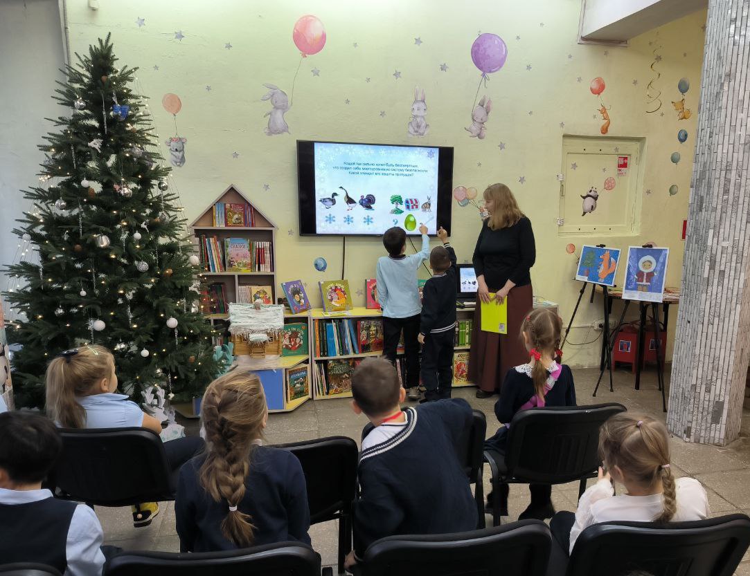 Сотрудники библиотеки познакомили ребят и их родителей с книжным фондом и музейный уголок Бориса Заходера, вспомнили правила бережного обращения с книгами, а также обсудили новогодние традиции.