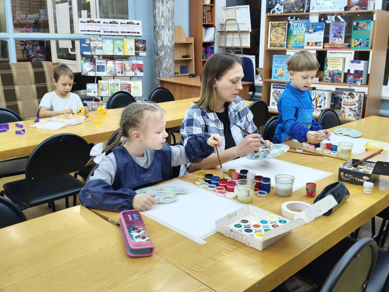 В библиотеке прошло занятие по рисованию гуашевыми красками. Педагог вместе с ребятами создавал яркие и праздничные портреты Деда Мороза. Каждый участник старался передать характер доброго волшебника, уделяя внимание деталям: красная шапочка, пушистая белая борода, выразительные глаза, весёлый красный носик и румянец на щечках. Мы научились смешивать краски, создавать плавные переходы цветов и радовались каждому штриху наших картин.