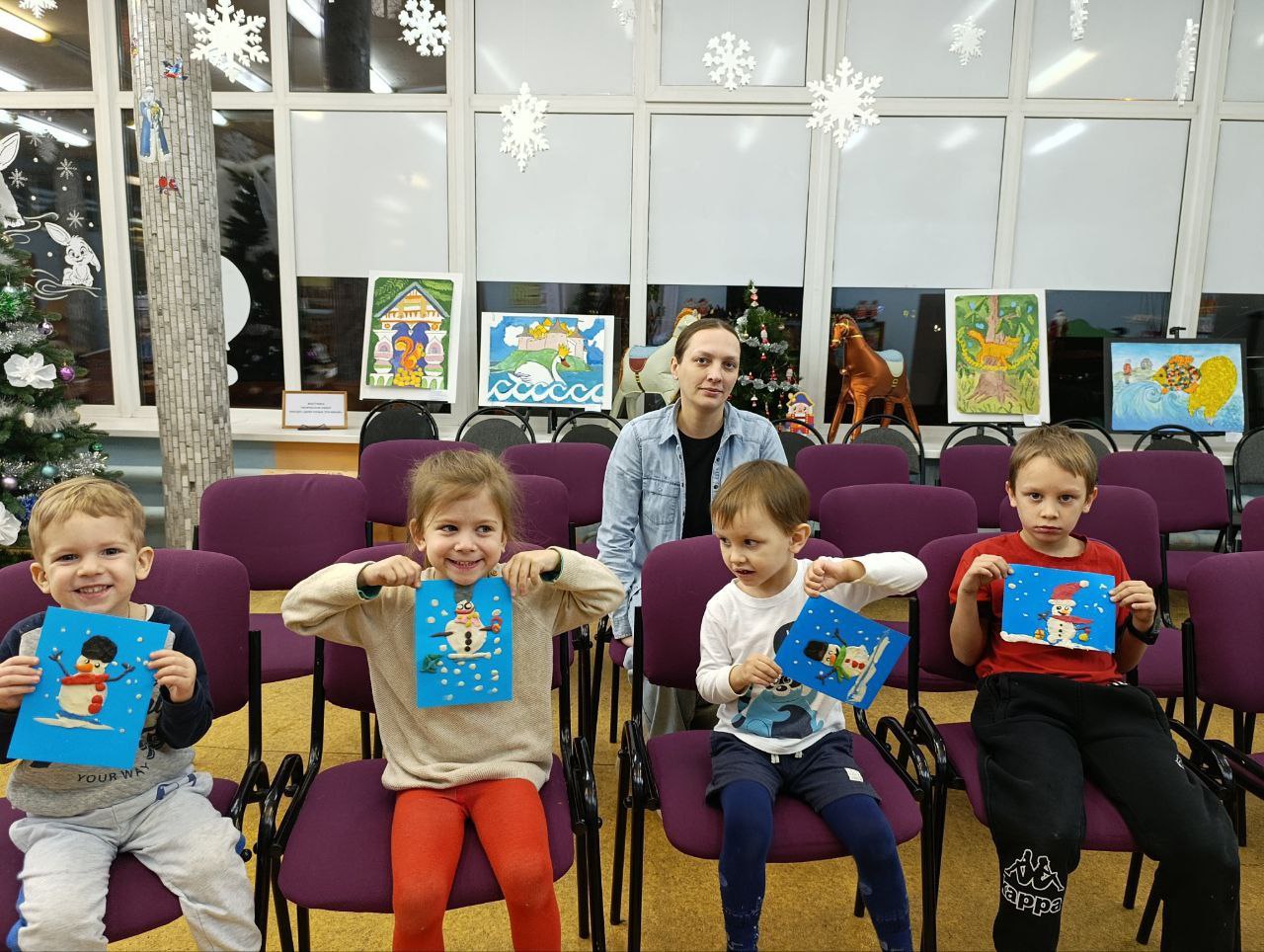 Снеговик, снеговичок, Нос морковный – крючочок. Целый день стоит, не тает – Детский смех ему мешает! В библиотеке на кружке по рисованию с детьми 3 лет малыши создавали очаровательных снеговичков. Белая краска на цветном картоне ожила: морковные носики, шапочки, веточки, снежинки — каждый со своей фантазией. На занятиях маленькие посетители кружка развивают моторику, координацию и любовь к творчеству. У всех получились яркие, тёплые шедевры.