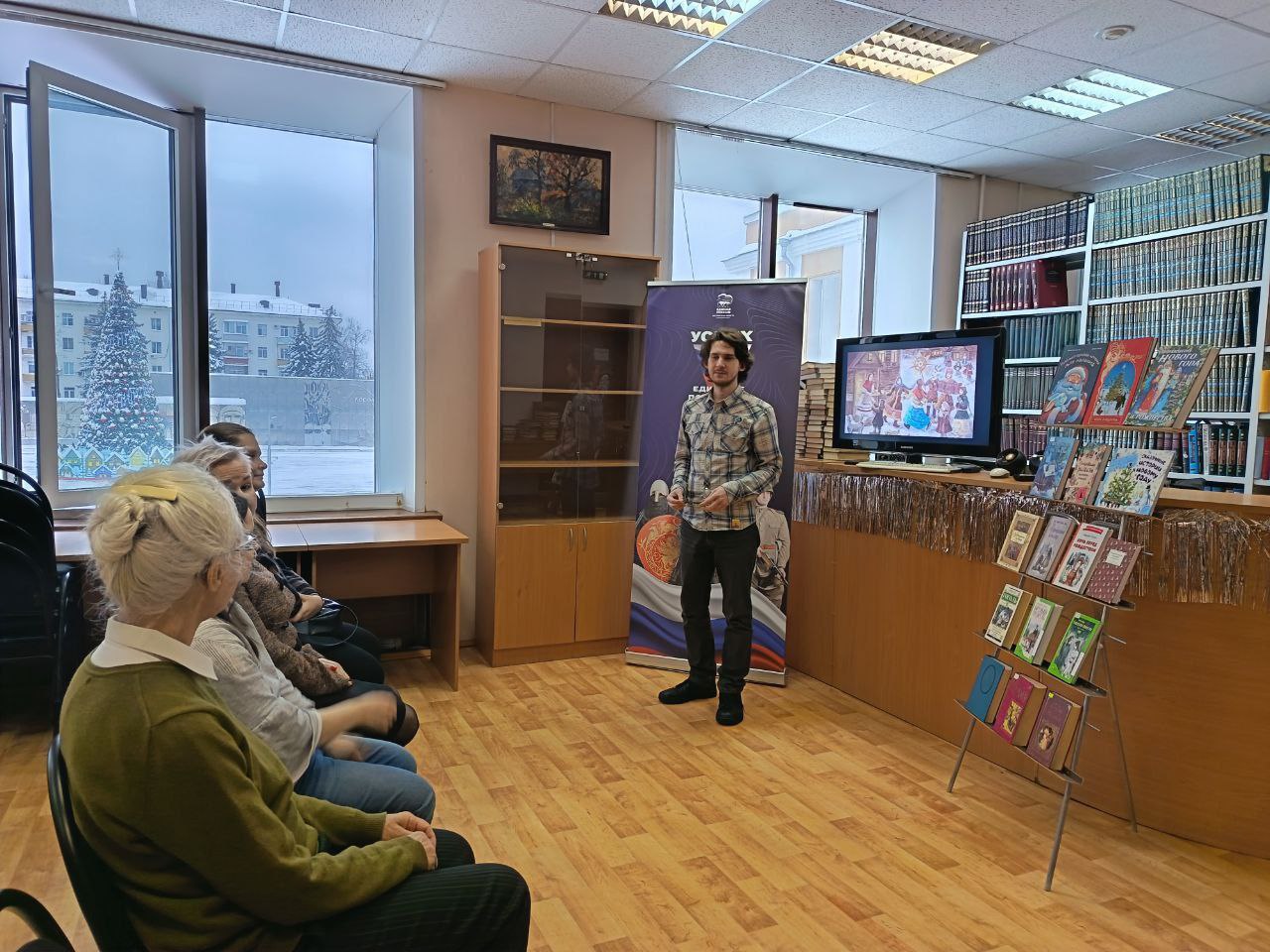 В библиотеке состоялась викторина "Новогодний киносерпантин". Участники мероприятия, прочитав сказку Владимира Федоровича Одоевского "Мороз Иванович", сравнили его сюжет со сказкой Братьев Гримм "Госпожа Метелица" и ответили на ряд вопросов. Отметив сходство и различие этих сказок, юные читатели посмотрели рисованный мультипликационный фильм "Мороз Иванович", созданный режиссером Иваном Аксенчуком в 1981 году.