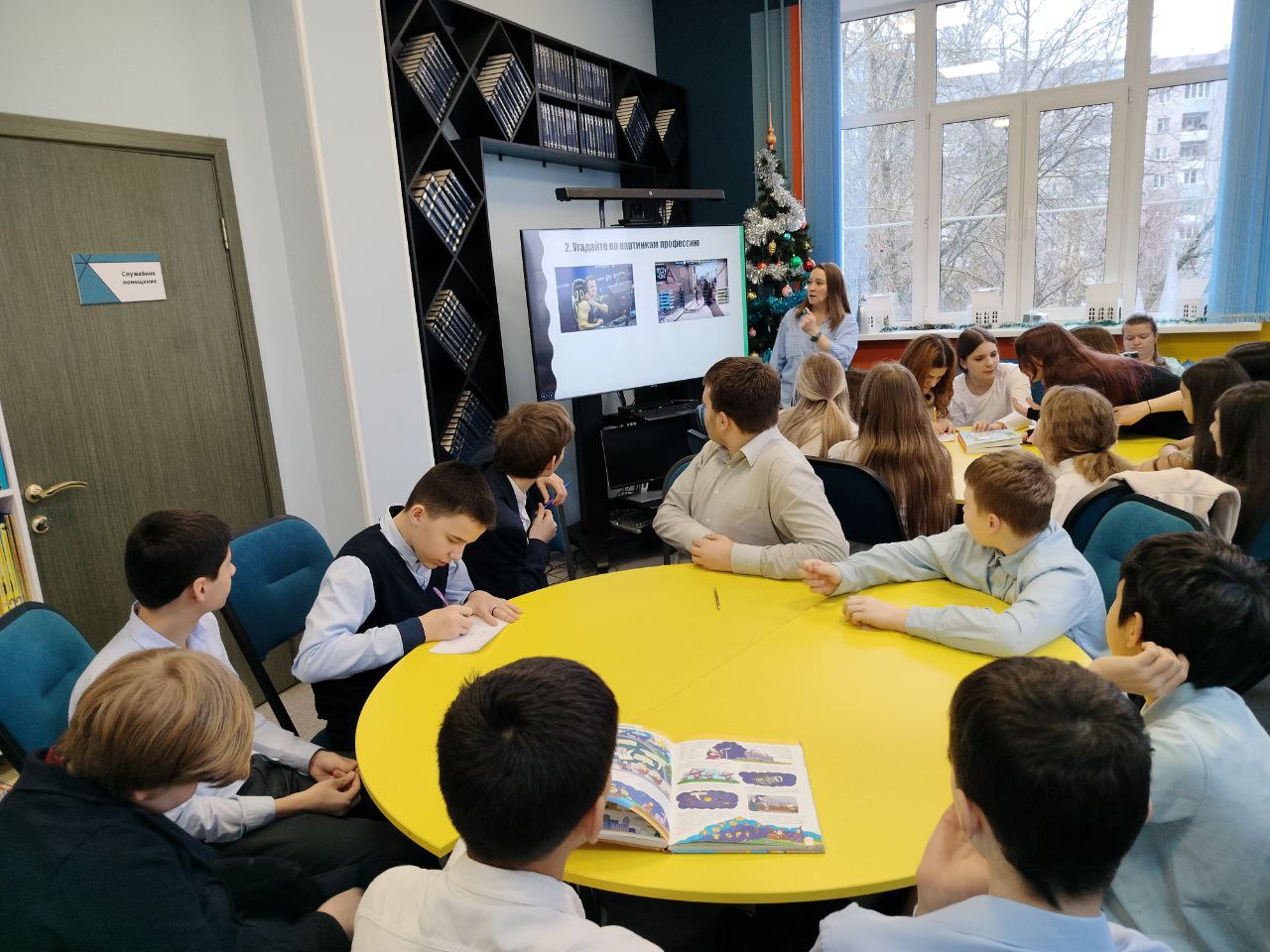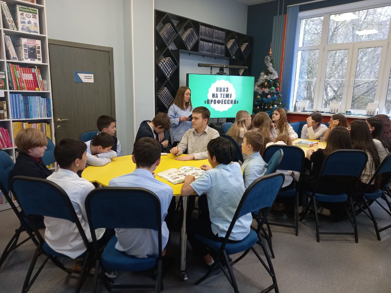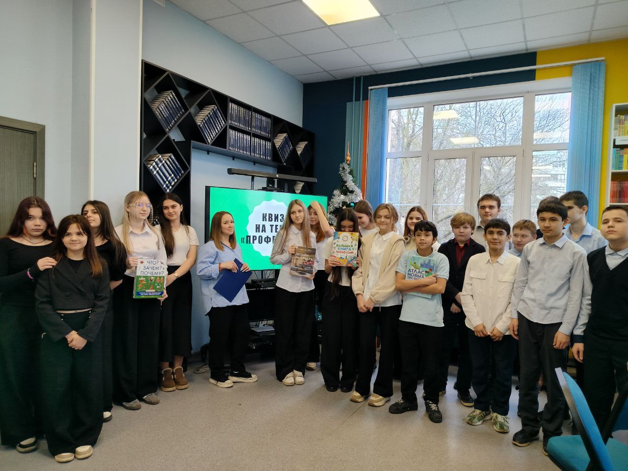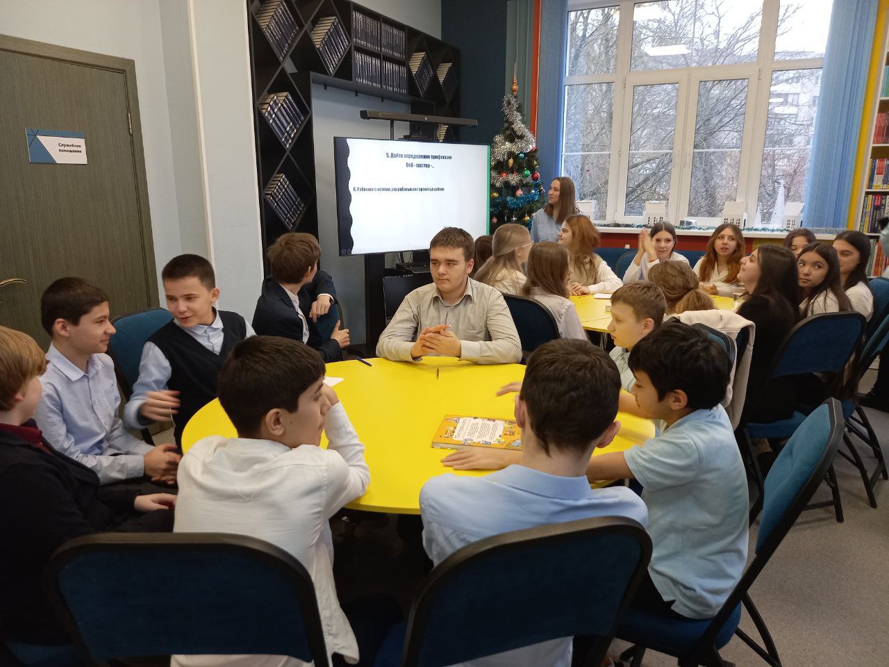 В библиотеке состоялся проф-квиз "Профессии будущего" по реализации Единой модели профориентации "Билет в будущее" для учащихся 7 "Б" класса МБОУ СОШ № 22. Мероприятие началось с рассказа библиотекаря об огромном мире профессий, о возможности выбора для каждого, ребята узнали о том, какие специальности востребованы в наше время и какие будут востребованы в будущем. Далее начались конкурсы, в которых ребята принимали активное участие. Игра состояла из пяти раундов: первый раунд — "Разминка", второй раунд — "Включаем логику", в третьем раунде "Угадываем по картинкам", в четвертом раунде нужно было угадать профессию по истории её создания, ну а в финальном раунде ребята называли профессии известных всем мультипликационных героев. Школьники с интересом справлялись даже с самыми сложными заданиями и делились своими планами на будущее.