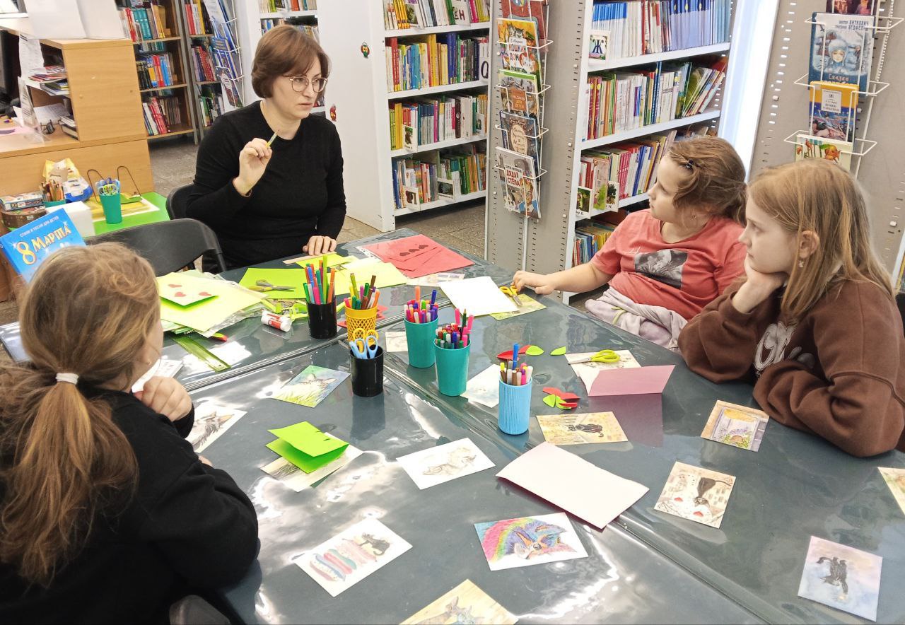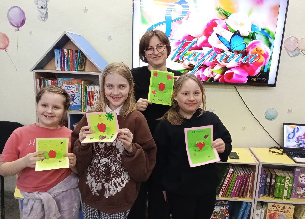 Накануне Международного женского дня, 8 Марта, в библиотеке прошёл творческий мастер-класс по изготовлению праздничных открыток в рамках кружка рисования "Кисточка". Работая в разных техниках, ребята сделали замечательные открытки с тюльпанами.