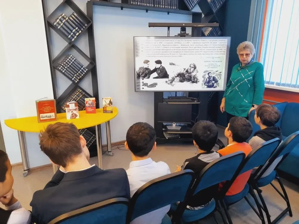 Сотрудник библиотеки представил электронную презентацию, а приглашённый гость – Красова Валентина Павловна, член совета ветеранов ПАО "РКК "Энергия" им. С. П. Королёва" рассказала ребятам о биографии и жизнедеятельности выдающегося конструктора и учёного, работавшего в области ракетной и ракетно-космической техники.