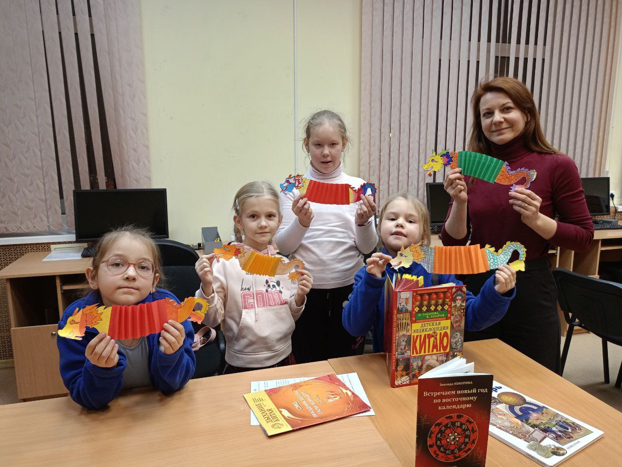 Сегодня юные читатели послушали одну из поучительных китайских сказок "Глаз дракона" и сделали из бумаги подвижную фигурку дракона.