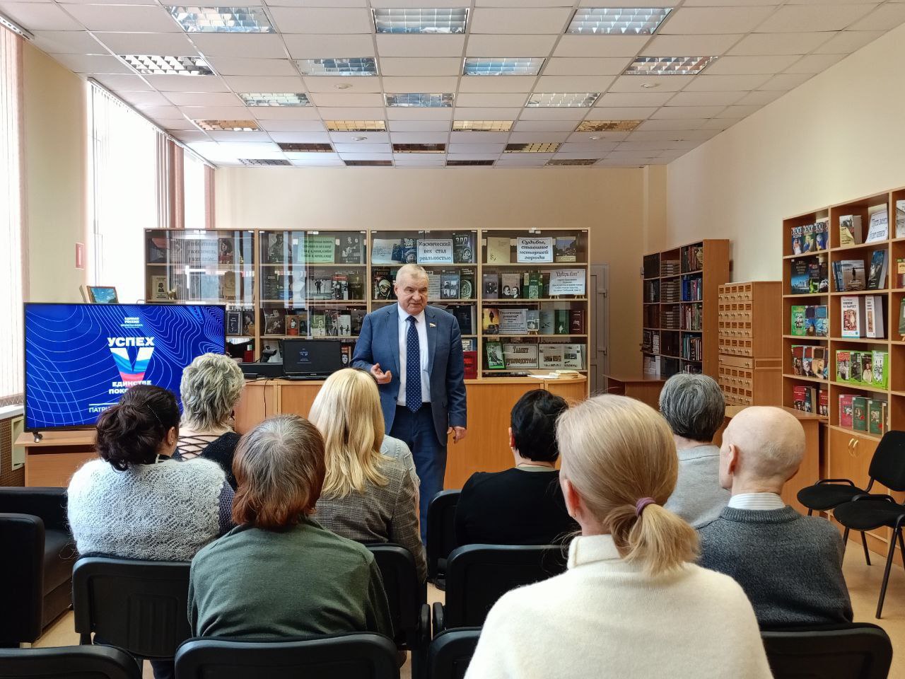 Депутат Московской областной думы, председатель комитета по науке и промышленности, полковник Генштаба Валерий Владимирович Мясоедов призвал участников мероприятия гордиться родным городом-наукоградом, его замечательными предприятиями и работающими на них людьми. Он подарил библиотеке уникальный настенный календарь на 2026 год с рисунками детей и девизами на каждый месяц, созданный благодаря градообразующим предприятиям.
