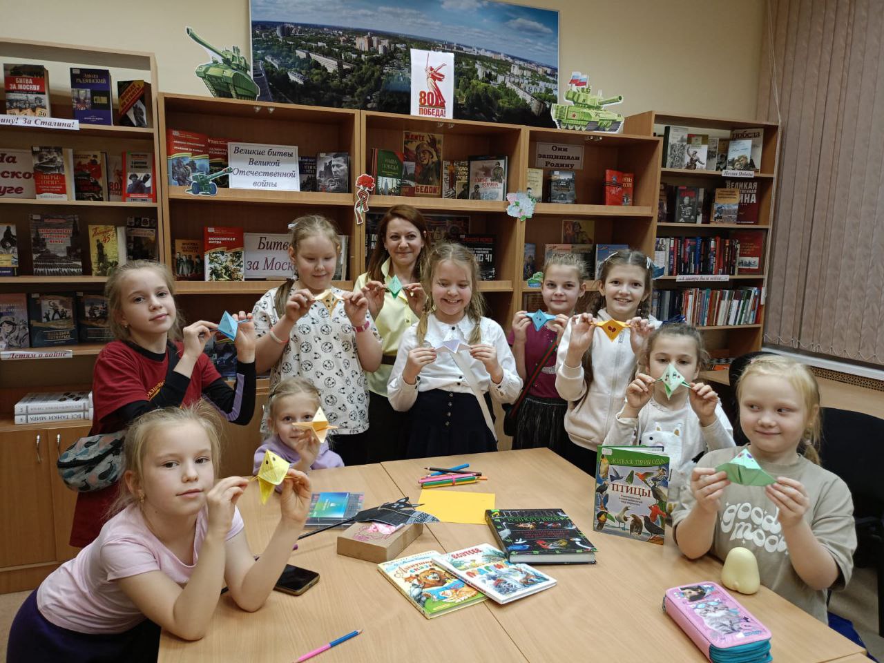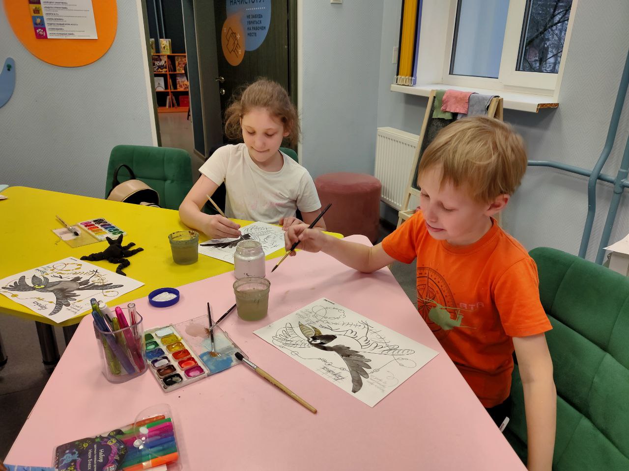 В библиотеке прошло занятие кружка "Чудо-ART". Сотрудники библиотеки рассказали об одной из самых умных птиц – вороне. Ребята узнали о том, что вороны умеют считать, великолепно организовывают свой досуг, катаясь с горок, изобретательны в добывании пищи и обладают хорошей памятью. Ребята послушали стихотворение А. Барто "Вороны" и сделали из цветной бумаги в технике оригами весёлых двигающихся птиц.