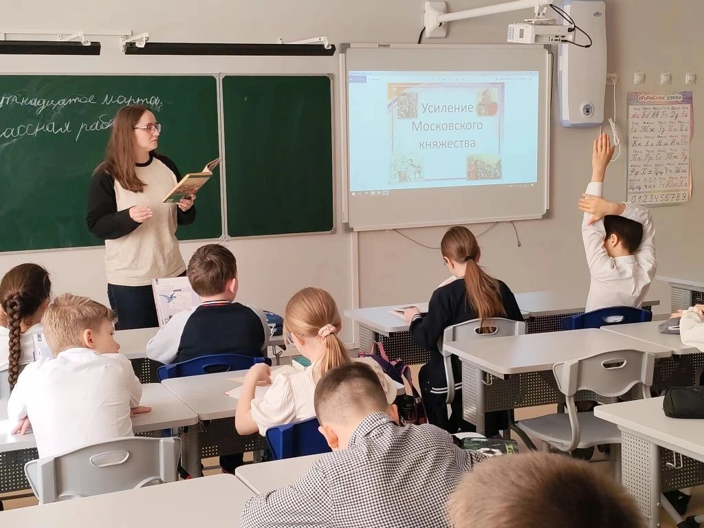 Школьники узнали о выдающихся личностных и полководческих качествах Московских князей, посмотрели исторический видеосюжет и познакомились с книгами, посвящёнными Дню основания Московского княжества.