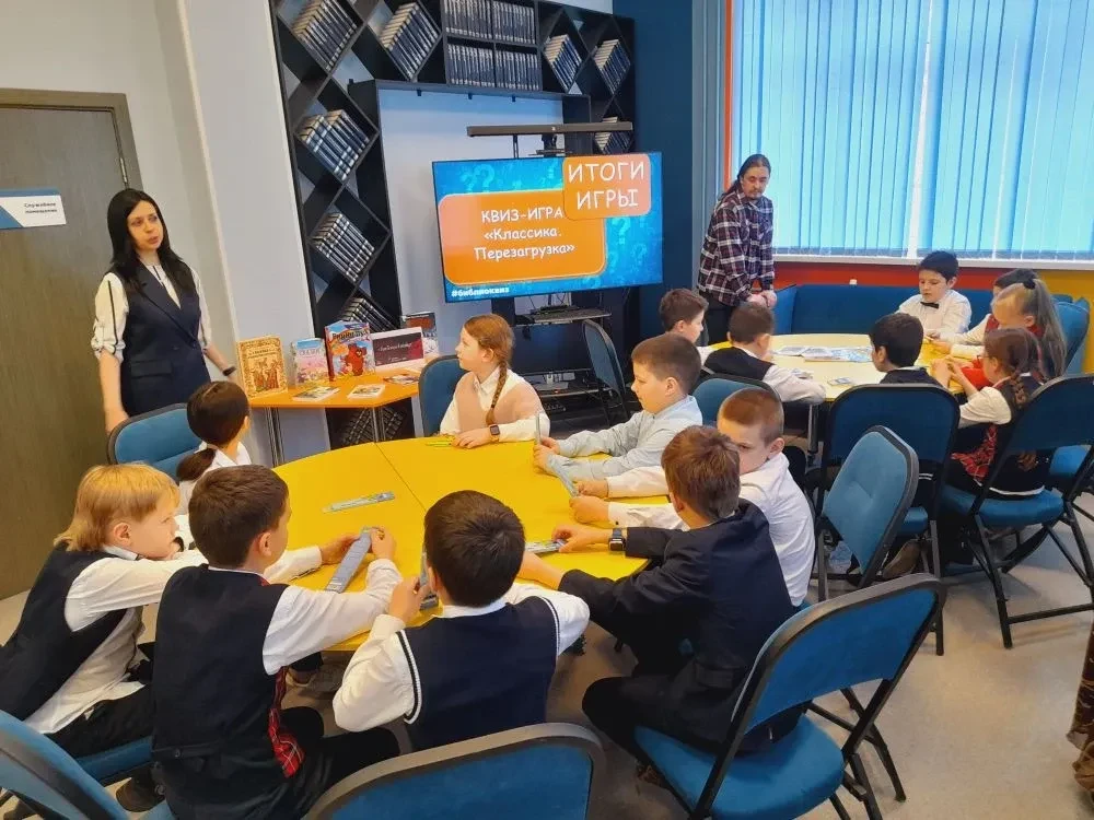 В библиотеке для учащихся начальной школы МБОУ СОШ № 12 в рамках реализации национального проекта "Культура" и Стратегии развития библиотечного дела Московской области прошла квиз-игра "Классика. Перезагрузка". Это увлекательное интеллектуальное состязание, где классическая литература предстала в новом свете! Квиз-игра "Классика: перезагрузка" – это возможность взглянуть на известные произведения с неожиданной стороны и проверить свои знания в новом формате. Мероприятие не только позволило ребятам проверить свои знания классической литературы, проявить умение работать в команде, но и осознать важную роль книг в нашей жизни.