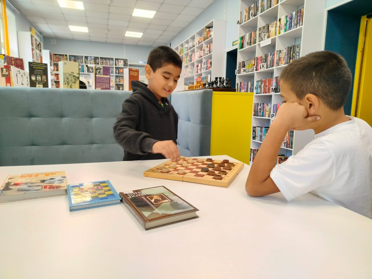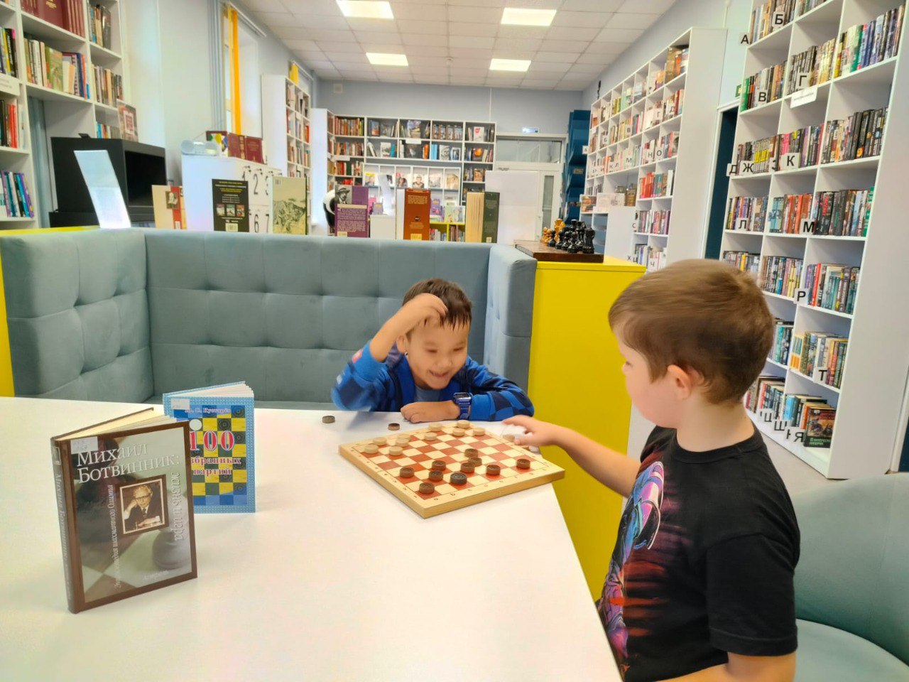 В библиотеке было очень оживлённо, юные шахматисты разных возрастов и уровня игры пришли, чтобы сразиться друг с другом и узнать, кто сегодня окажется сильнее в этой увлекательной игре.