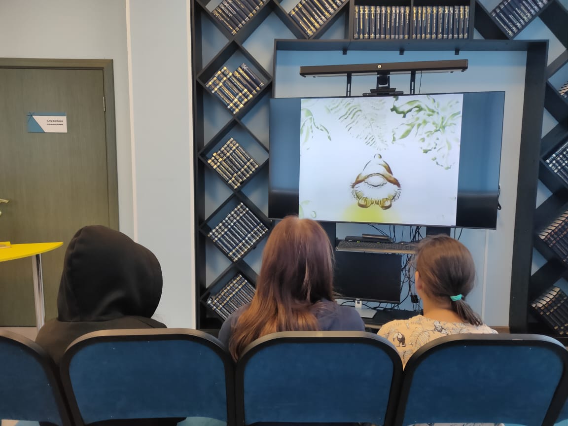 В библиотеке на встрече клуба любителей советского кино "Ретро" для юных посетителей был организован кинопоказ по произведению Виталия Губарева "Королевство кривых зеркал". Ребята с интересом наблюдали за приключениями Оли и Яло, попавших в волшебную страну. Сказочные герои перенесли детей в увлекательный мир, полный опасностей и испытаний.