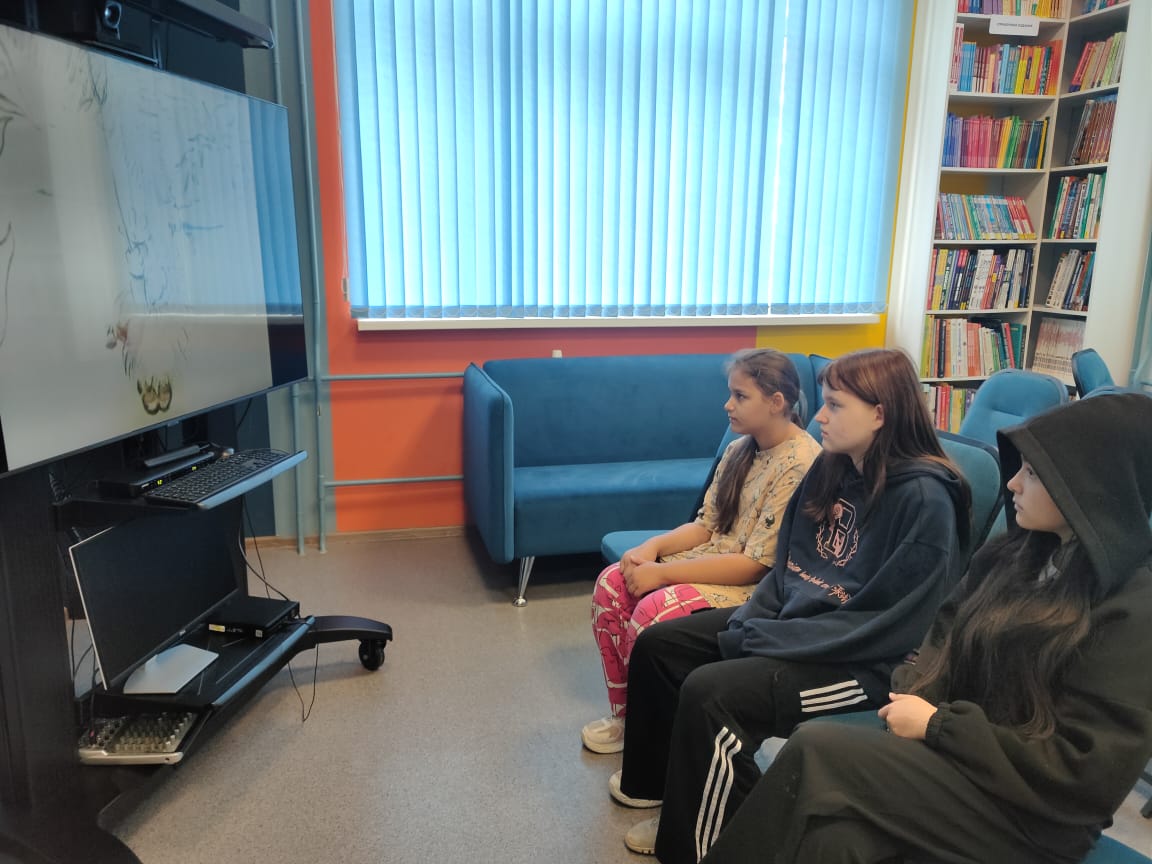 Ребята вместе с сотрудником библиотеки приняли участие в виртуальной экскурсии "Мой любимый Королёв", вспомнили достопримечательности города, ответили на вопросы викторины, поговорили о гербе Королёва.