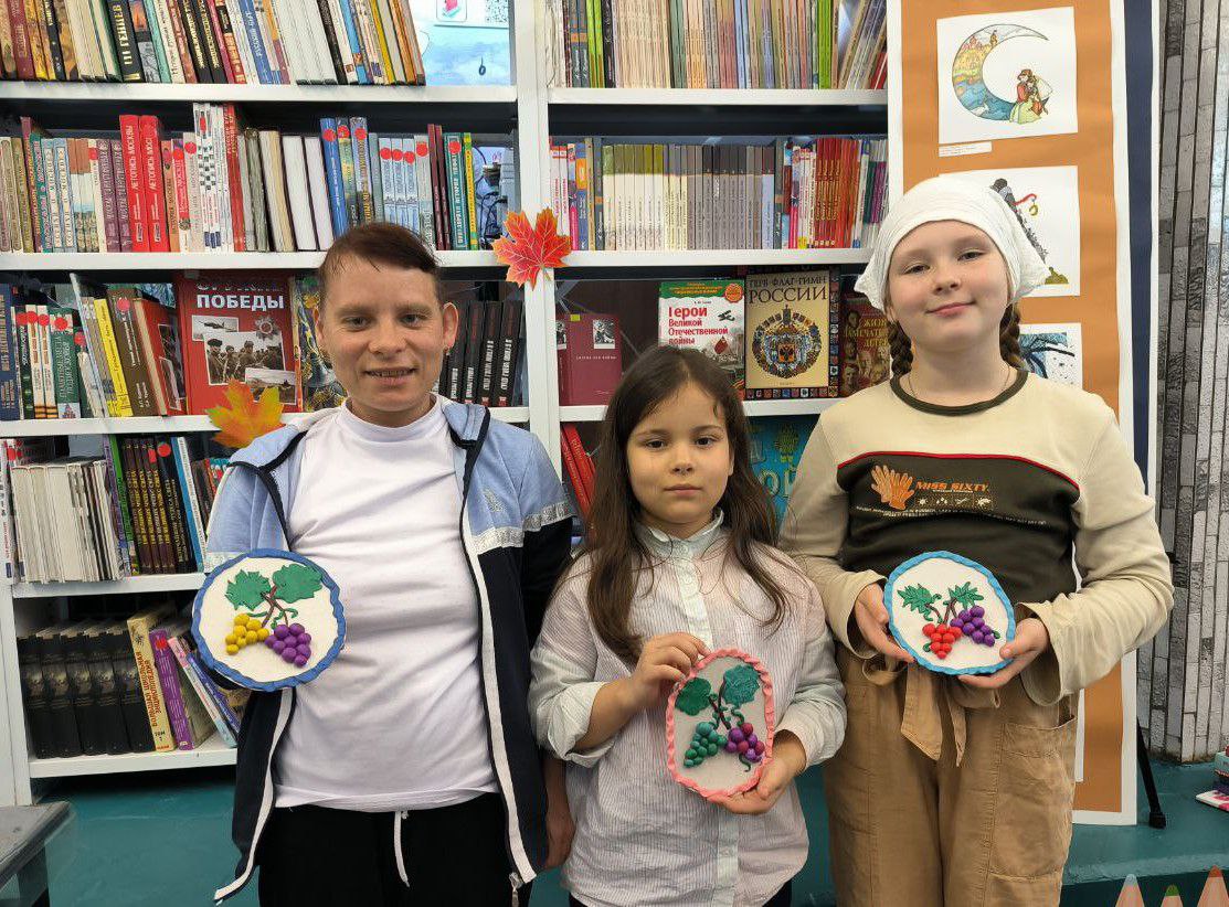 В библиотеке в рамках кружка "Юный скульптор" прошёл мастер-класс "Виноградная гроздь". Детям прочитали басню Ивана Андреевича Крылова "Лисица и виноград", после чего приступили к практической работе. У всех получились яркие, сочные и очень аппетитные виноградные гроздья!