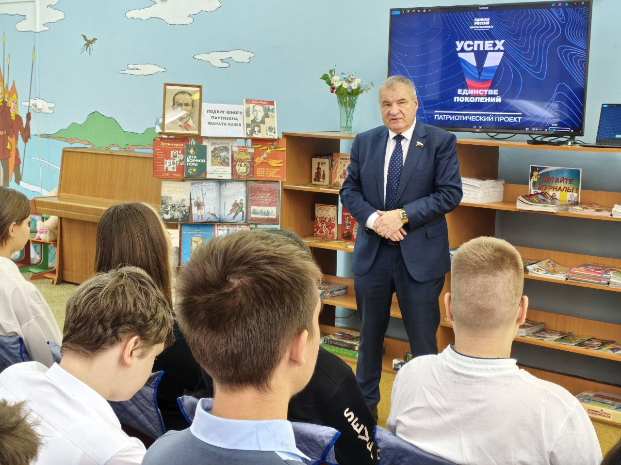 В рамках регионального проекта "Успех в единстве поколений" в библиотеке состоялся час мужества, посвящённый пионеру-герою Марату Казею. Мероприятие, адресованное ученикам 8 класса МБОУ СОШ № 7, стало данью памяти юному герою Великой Отечественной войны.