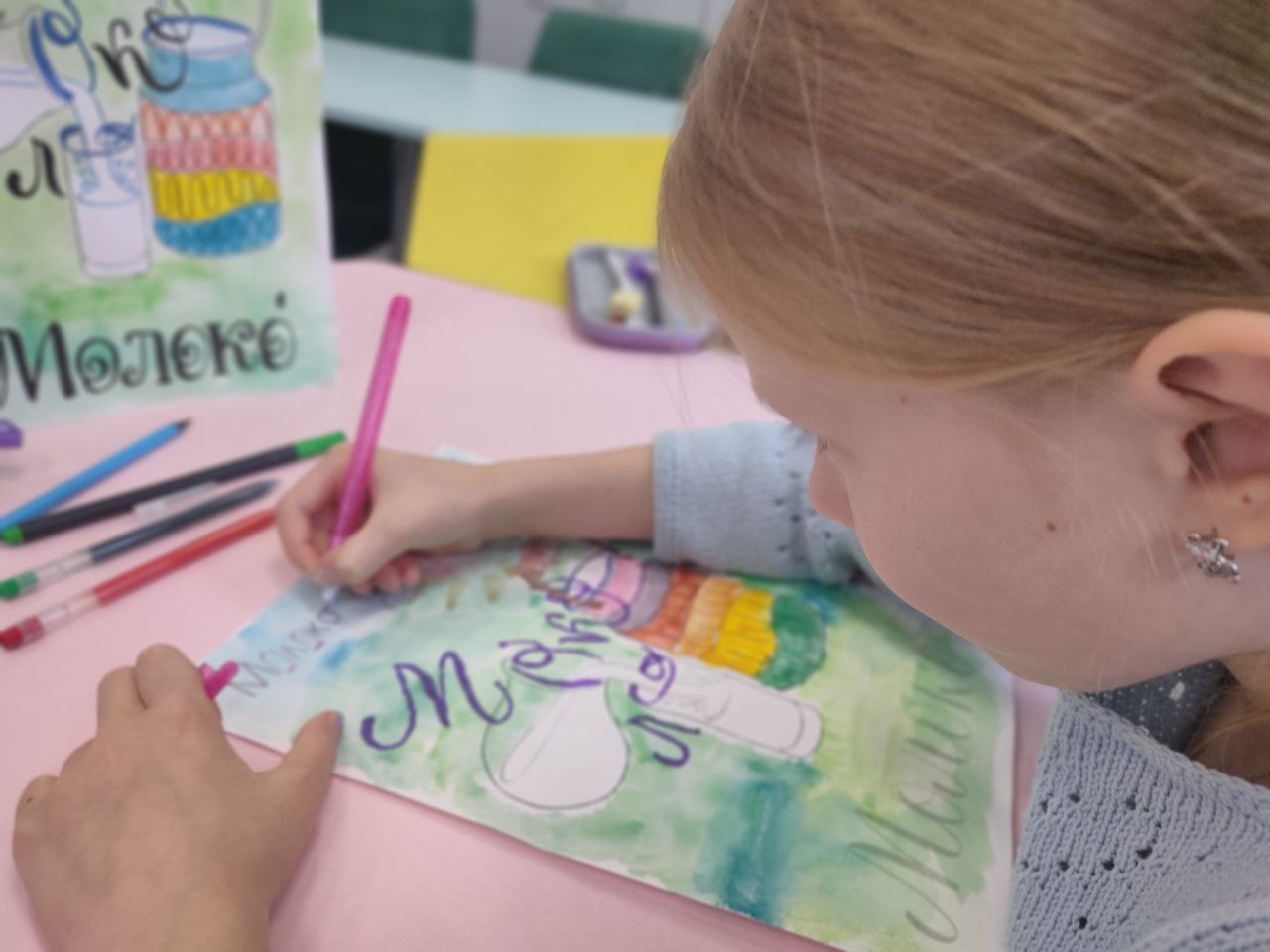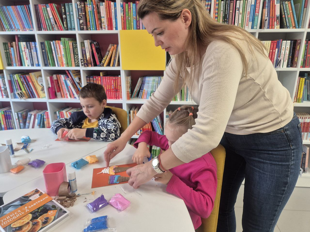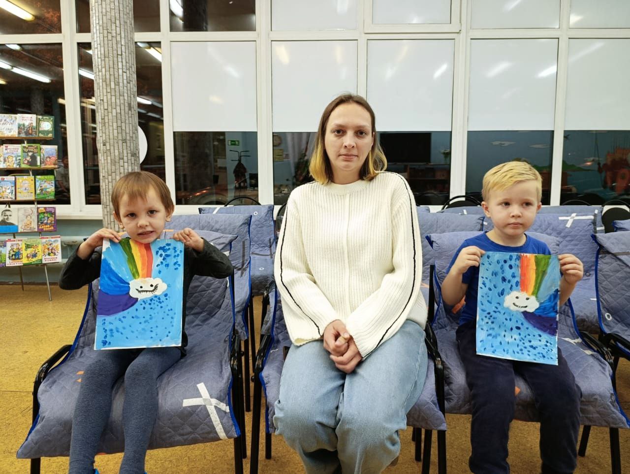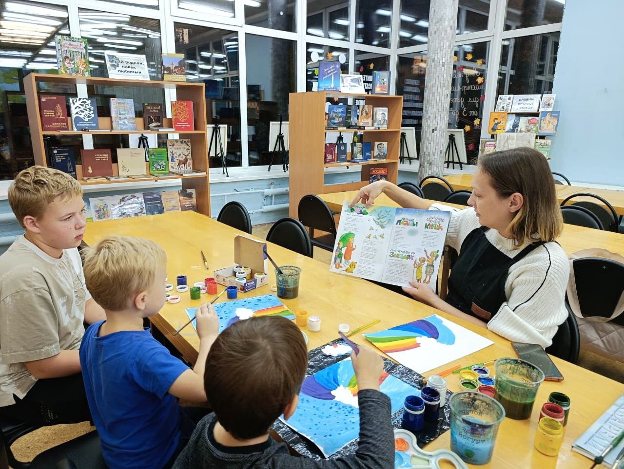 В библиотеке прошёл кружок рисования на тему "Волшебная тучка: радуга и дождик". На занятии дети создавали яркую композицию на голубом фоне. В центре листа они рисовали пушистую белую тучку. С одной стороны от нее выходила разноцветная радуга, что помогло повторить основные цвета. С другой стороны тучки ребята изобразили дождик. Занятие было направлено на развитие композиционных навыков, мелкой моторики, изучение цветов и природных явлений. Все дети успешно справились с задачей и получили массу положительных эмоций от созерцания своего "волшебного неба".