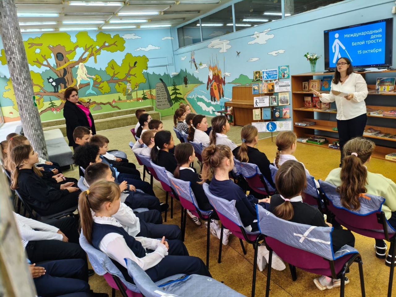15 октября отмечается Международный день белой трости. Этот день призван привлечь внимание общественности к проблемам людей с нарушениями зрения и подчеркнуть значимость поддержки и взаимопонимания в обществе. Сотрудники библиотеки провели тематический обзор "Талант не может быть незрячим!", рассказав ребятам о значении этого дня, числе незрячих и слабовидящих людей в России, а также поделившись историями известных личностей, достигших мирового признания, несмотря на полную или частичную потерю зрения.