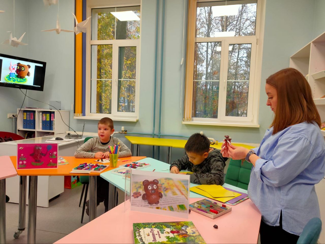 Каждый год 14 октября свой день рождения отмечает один из самых известных героев детской литературы славный медвежонок. Именно в этот день 1926 года свет увидела первая книга Алана Милна положившая начало невероятной истории о приключениях плюшевого медведя и его друзей в Зачарованном лесу. В библиотеке в рамках кружка "Колобок" прошло творческое занятие, на котором ребята прослушали отрывок из книги Алана Милна о приключениях смешного мишки и его приятелей. Затем гости слепили любимого героя этого замечательного произведения.