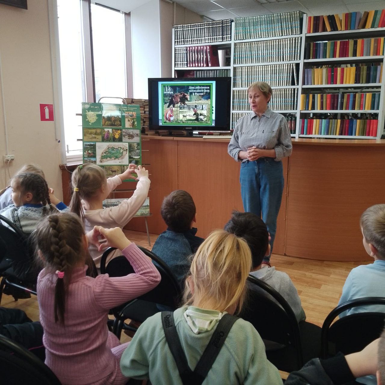 Сотрудники библиотеки провели экологический час к Дню работников государственных заповедников: "Заповедные тропы: природа, наука и охрана" для детей МБОУ СОШ№ 13 дошкольное отделение "Сказка". Сотрудники осветили такие вопросы: "В чём значение охраняемых территорий? Зачем создавать заповедные зоны? С какими трудностями и задачами сталкиваются сотрудники заповедников?".
