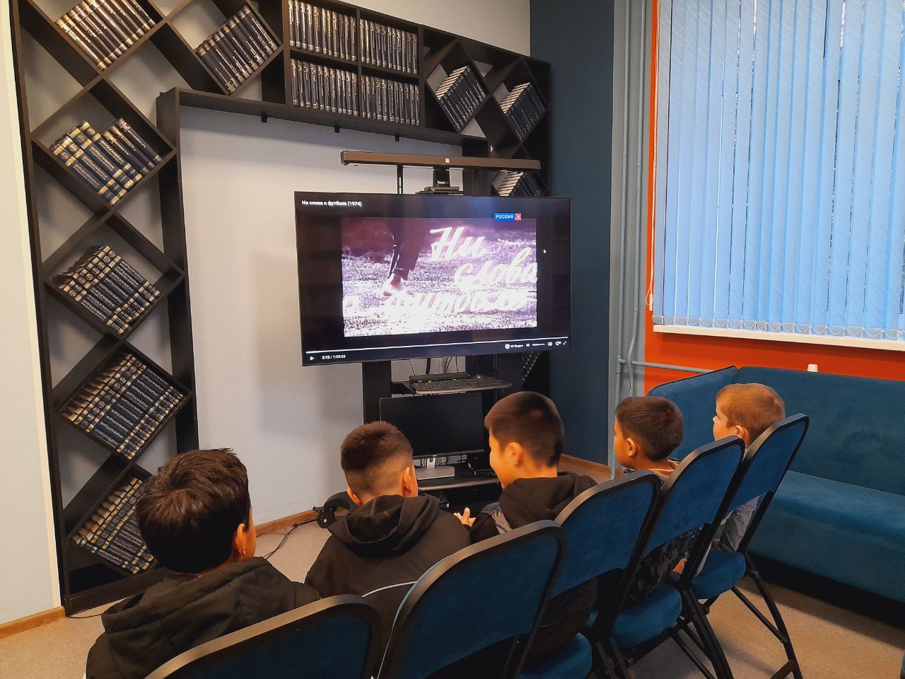 В библиотеке на встрече клуба любителей советского кино "Ретро" для юных посетителей был организован кинопоказ советского художественного фильма "Ни слова о футболе" режиссёра Исаака Магитона, снятый в 1974 году. Фильм о юных футболистах. Мальчику Славе 14 лет, он бесстрашен и крут, а ещё он здорово играет в футбол. Но игра во дворе и в школе – это одно, а сборная города – это совсем другое.