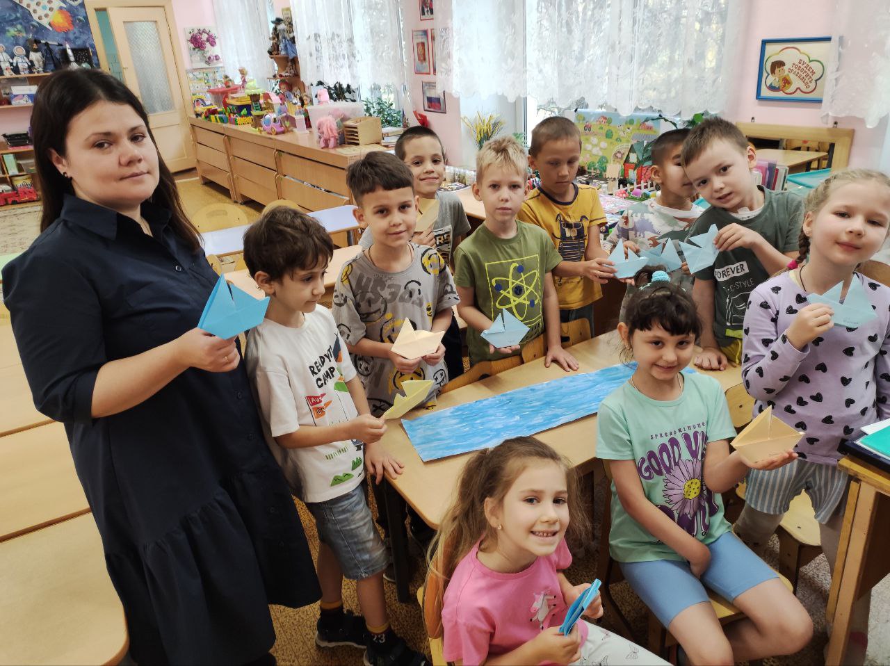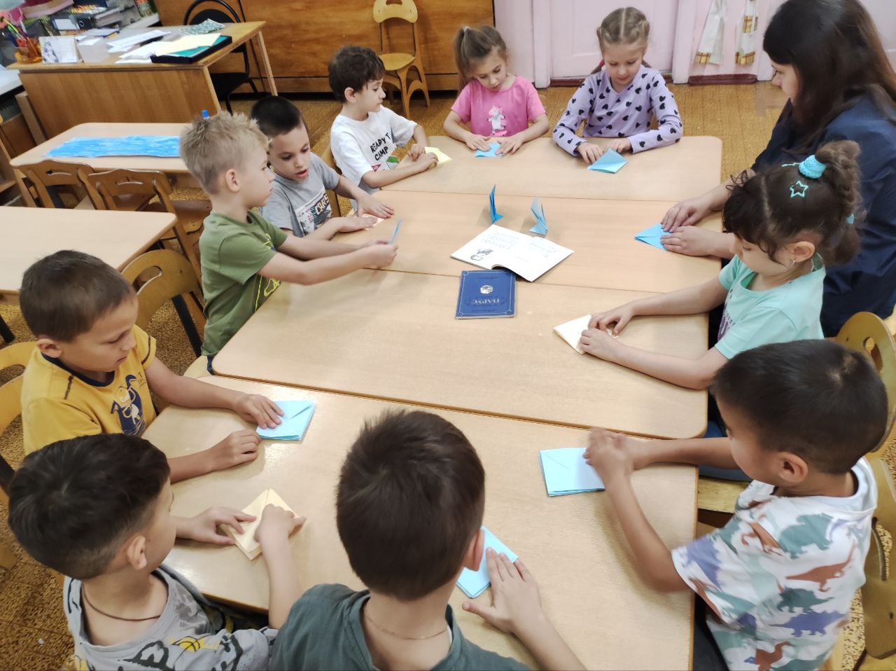 Сотрудником библиотеки была организована мобильная читальня для дошкольников МБДОУ СОШ № 1. Кружок громких чтений "Зелёная лампа" позволил юным слушателям познакомиться с биографией и творчеством М. Ю. Лермонтова в преддверии дня рождения поэта. Послушав стихотворение "Парус", на кружке оригами "Модуль" ребята сложили целый флот парусников из цветной бумаги.