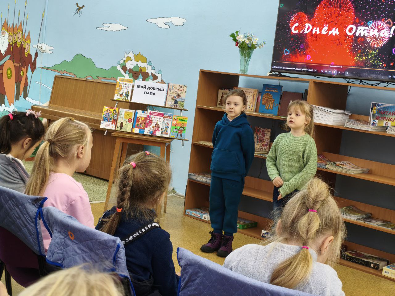 Библиотека пригласила дошкольников на трогательную встречу "К папам всем сердцем!". Маленькие гости из дошкольного отделения «Белочка» МБОУ СОШ № 1 впервые окунулись в волшебный мир детской библиотеки, где их ждали книжные сокровища, воспевающие отцовскую любовь. На абонементе ребят окружили добрые истории об отцах, рассказанные языком А. Гайдара, В. Драгунского, В. Маяковского, А. Раскина и других детских писателей. В читальном зале юные голоса звонко декламировали тематические стихи, а познавательная презентация и мелодичная песенка о дружбе и крепкой семье наполнили сердца маленьких читателей теплом и радостью. С любопытством в глазах дети листали страницы детских журналов, отыскивая стихи и картинки, посвященные самым дорогим папам. В завершение встречи ребята с трепетом продемонстрировали яркие сердечки, любовно созданные своими руками вместе с педагогами, – символ их безграничной любви и благодарности, приготовленный в подарок самым лучшим папам на свете.
