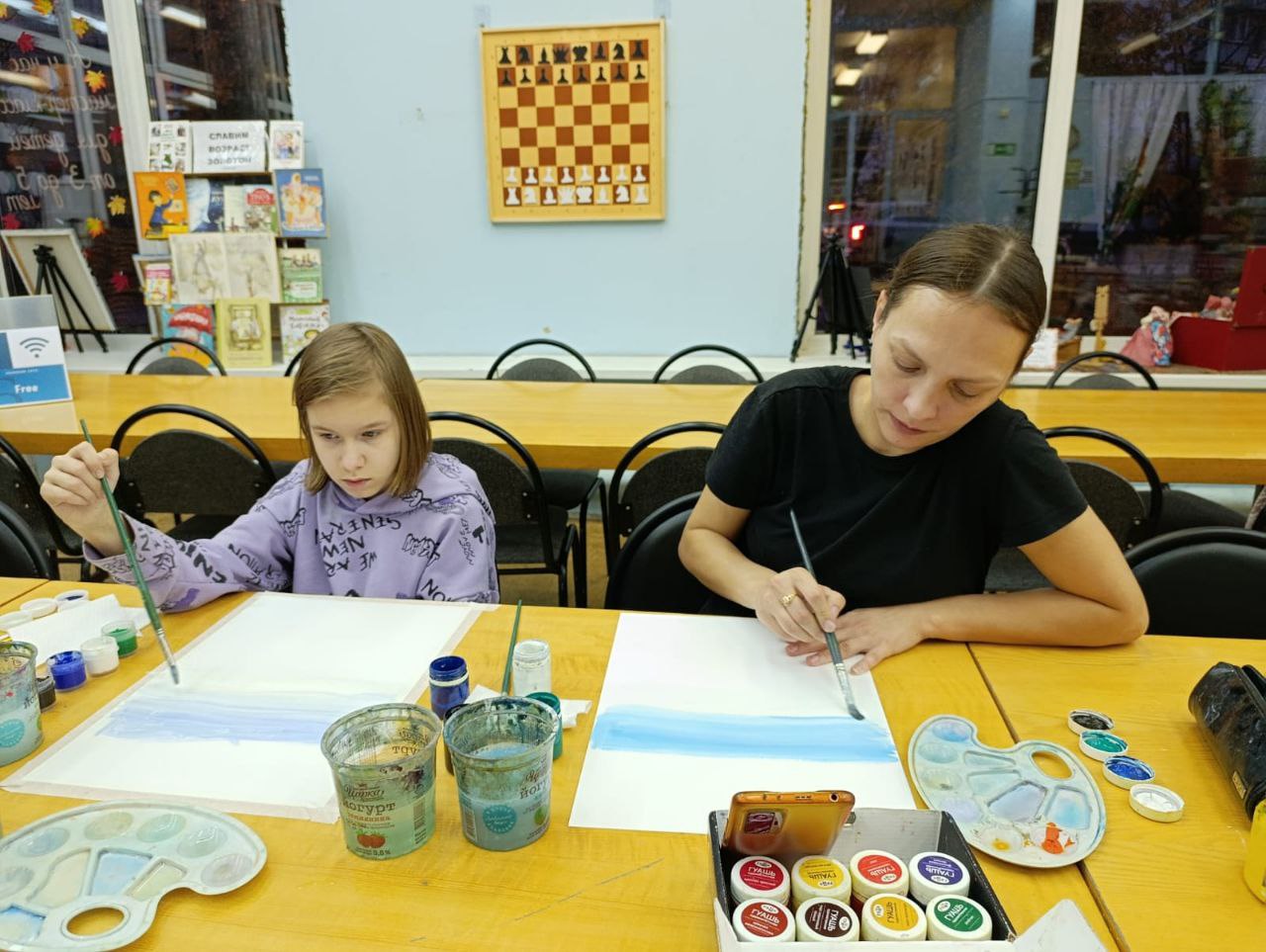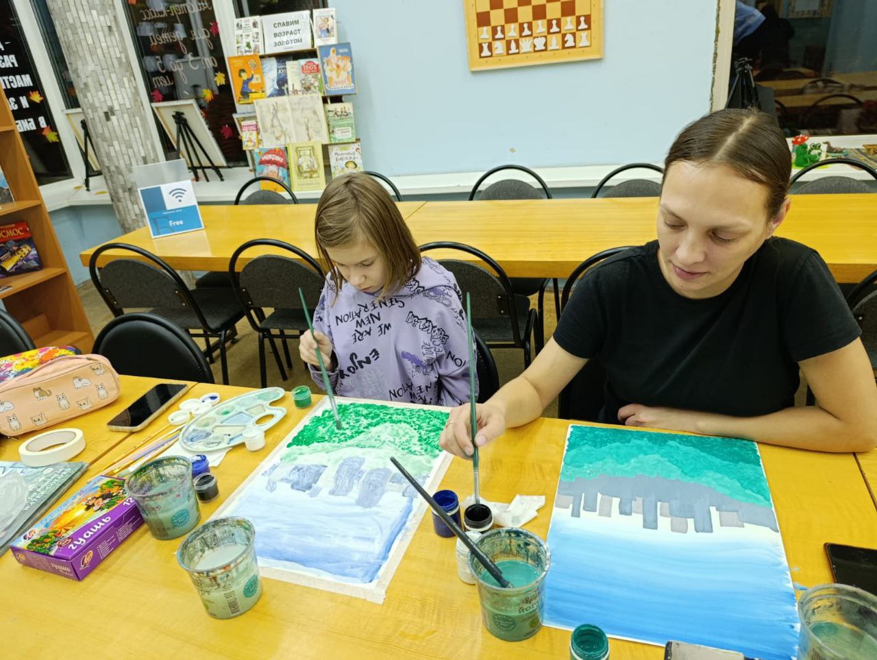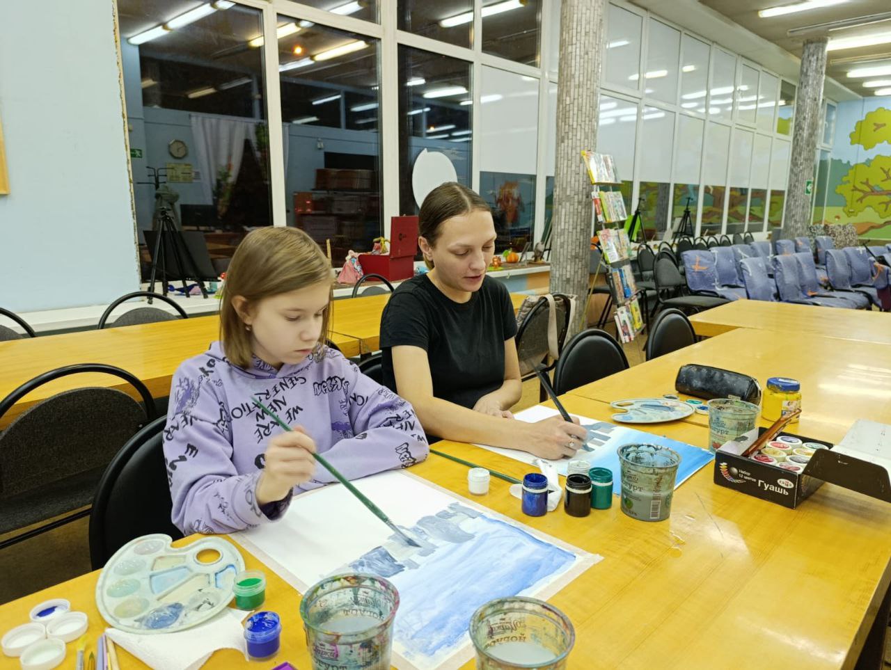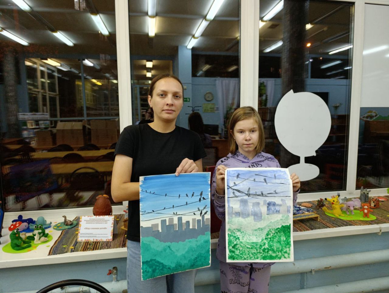 В библиотеке прошёл кружок по рисованию гуашевыми красками – "Городской пейзаж: основы пространства и цвета". На этом занятии мы с юной художницей изучали понятия плановости и создание иллюзии глубины пространства на плоскости листа. Для изображения домов мы использовали принцип световоздушной перспективы. Финальным аккордом стало добавление жизни и динамики: тонкими черными линиями мы изобразили провода, на которых уютно расположились стайки птиц. Эта деталь прекрасно оживила городскую сцену. Юная художница научилась выстраивать сложную многослойную работу от общего к частному, получив в результате гармоничный и профессионально решенный городской пейзаж.